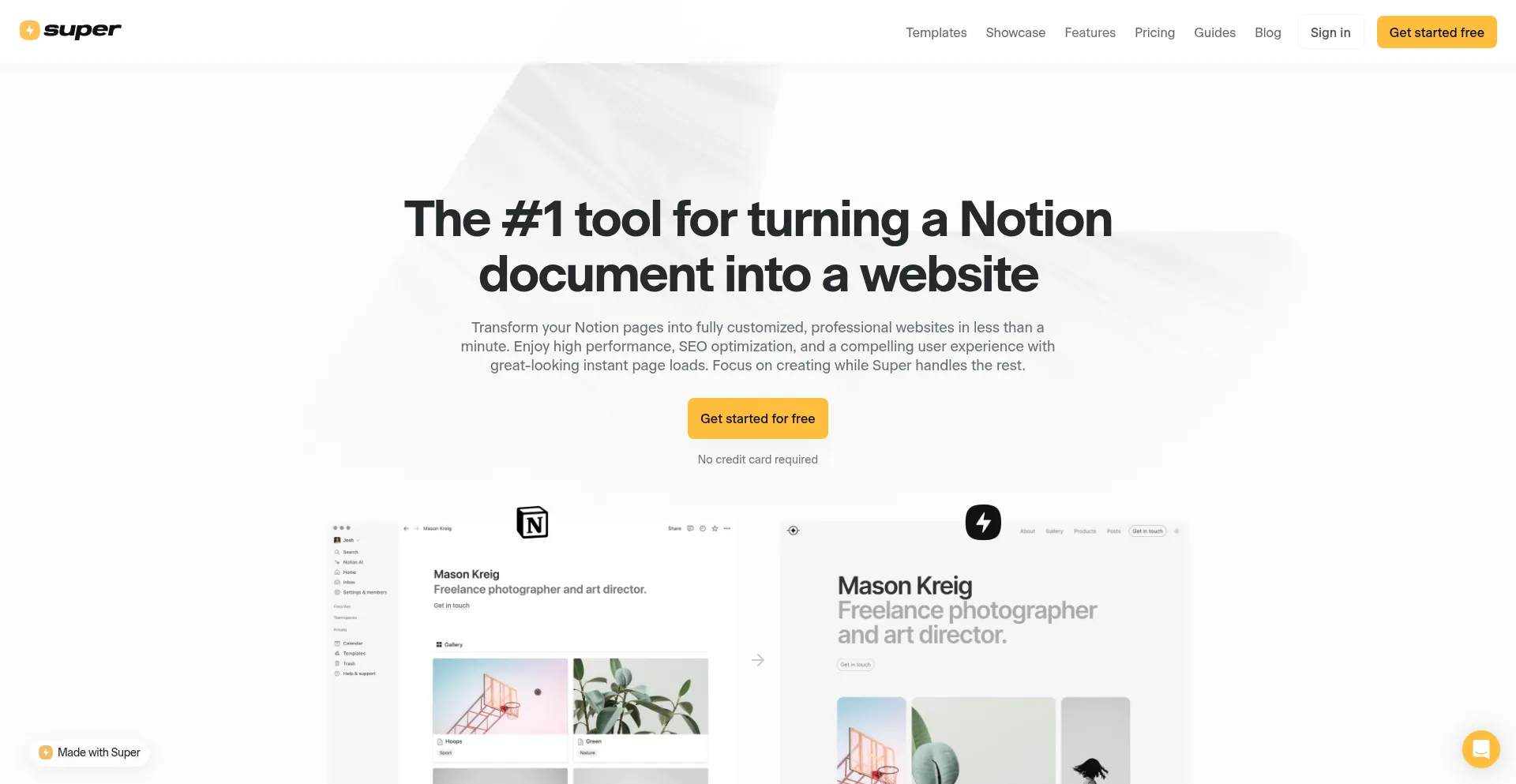 Create a custom website in less than a minute with instant page loads, SEO optimization, and customized theming. All your content is kept and managed in Notion so you can focus ...