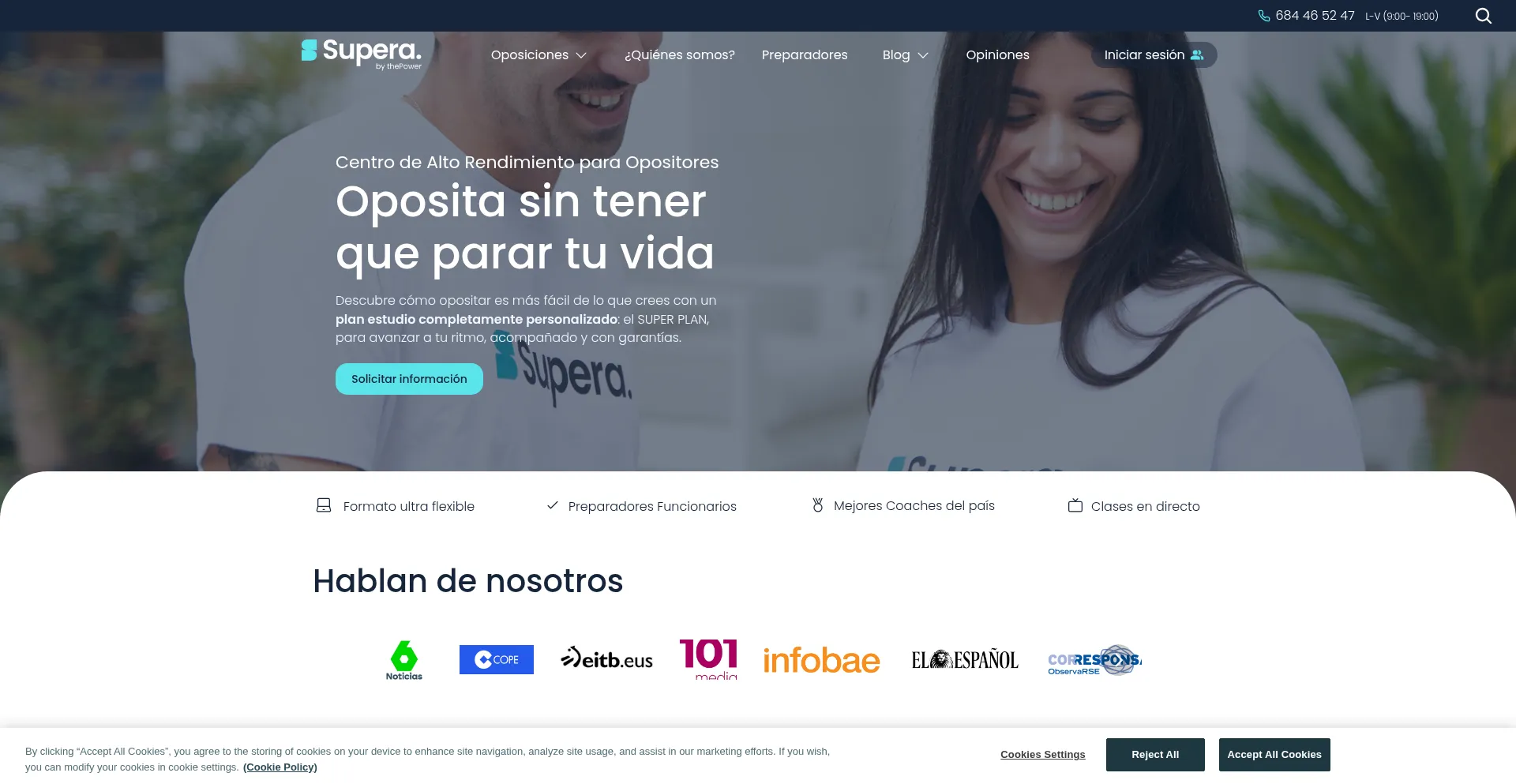 The website implements cookie consent mechanisms in compliance with privacy regulations such as GDPR or CCPA. This demonstrates that superaoposiciones.es adheres to data protection standards and provides users with control over personal data collection practices.