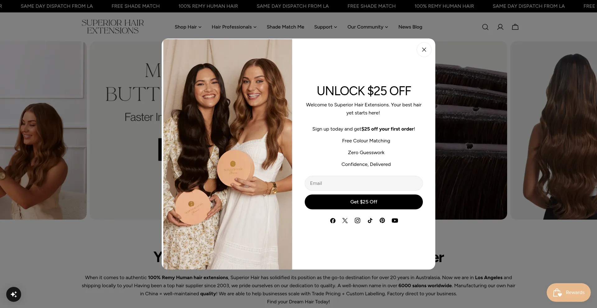 Our analyzer determines that website superiorhairextensions.com is using Shopify CMS. Shopify is a popular e-commerce platform, powering around 4.4% of websites globally.