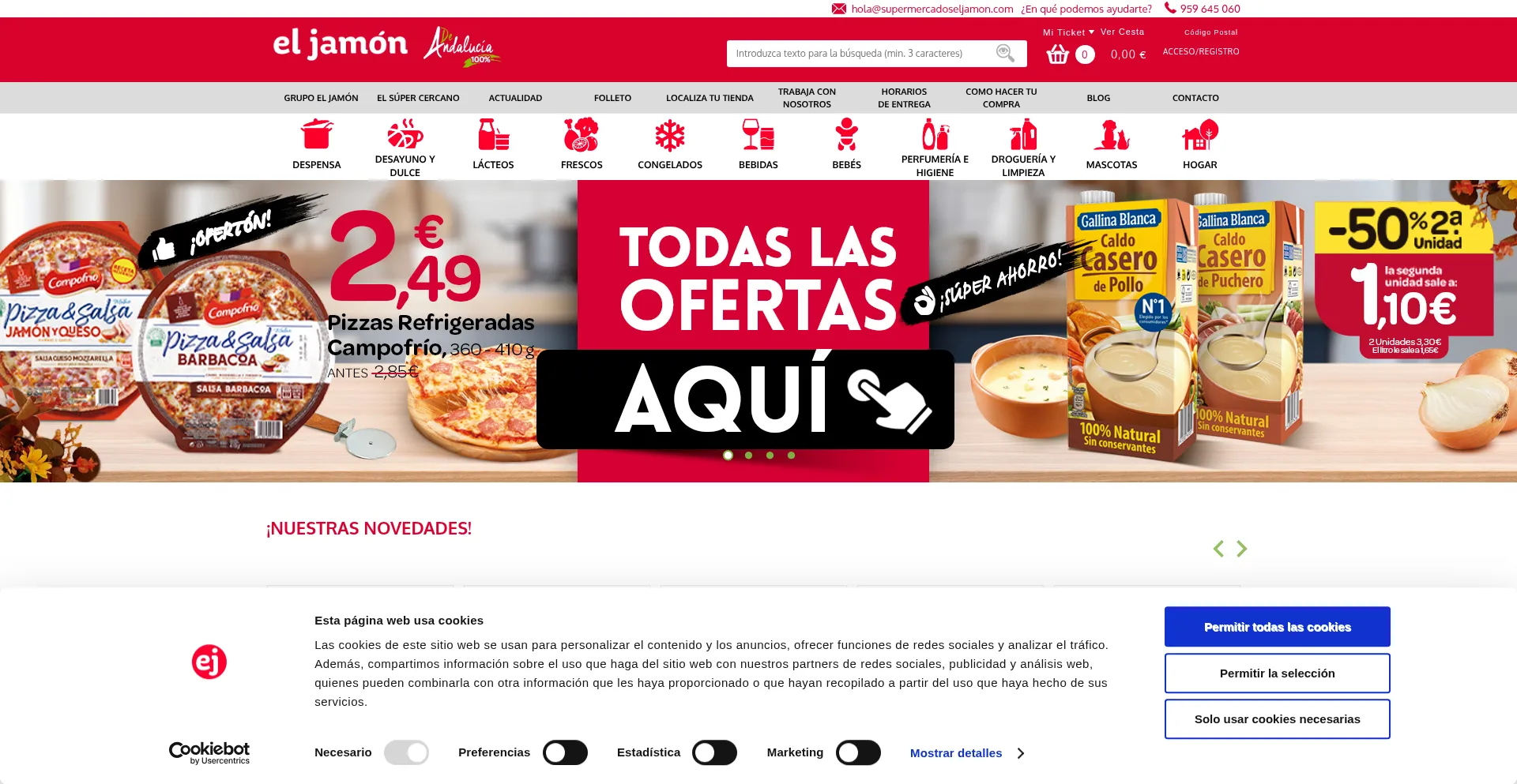 The website implements cookie consent mechanisms in compliance with privacy regulations such as GDPR or CCPA. This demonstrates that supermercadoseljamon.com adheres to data protection standards and provides users with control over personal data collection practices.