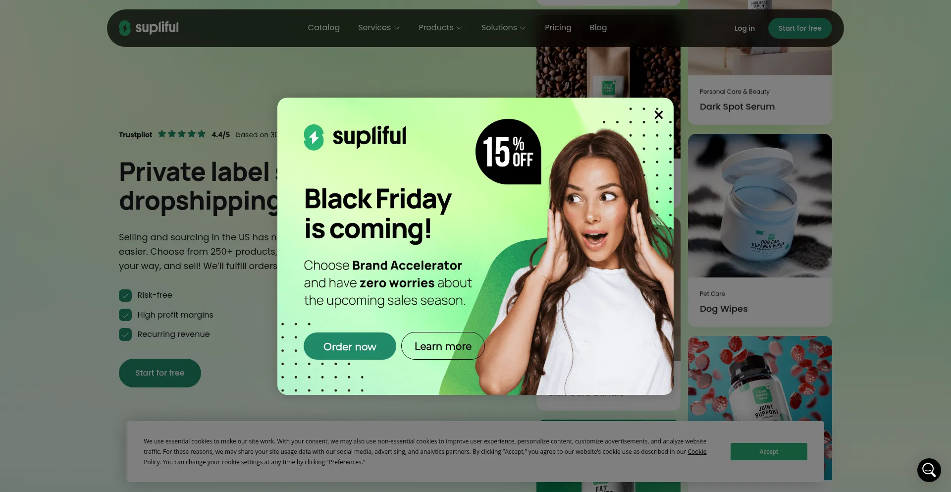 The website implements cookie consent mechanisms in compliance with privacy regulations such as GDPR or CCPA. This demonstrates that supliful.com adheres to data protection standards and provides users with control over personal data collection practices.