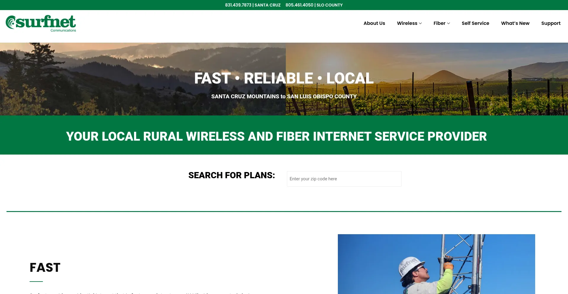 Your reliable local wireless and fiber internet service provider. Surfnet services the Santa Cruz Mountains and San Luis Obispo County with high-speed internet.