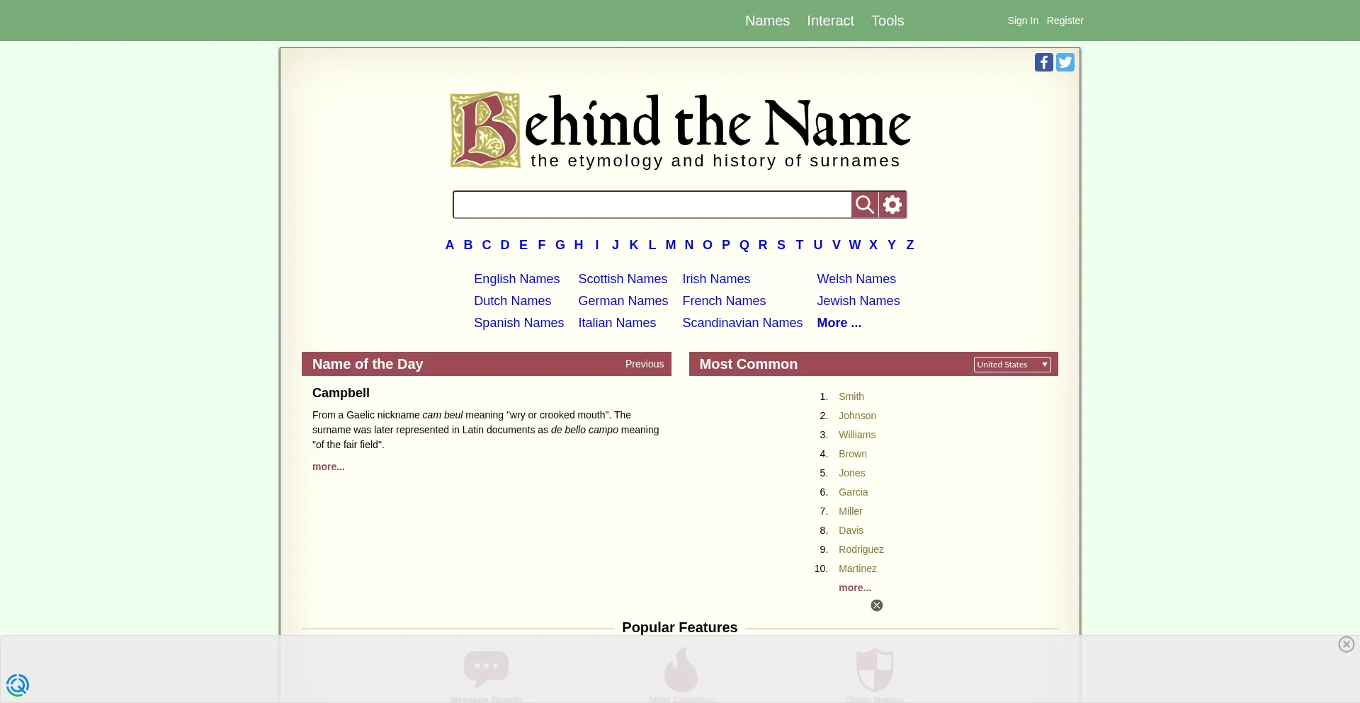 Find the meaning, history and origin of surnames, also called last names or family names, as well as famous bearers and usage statistics.
