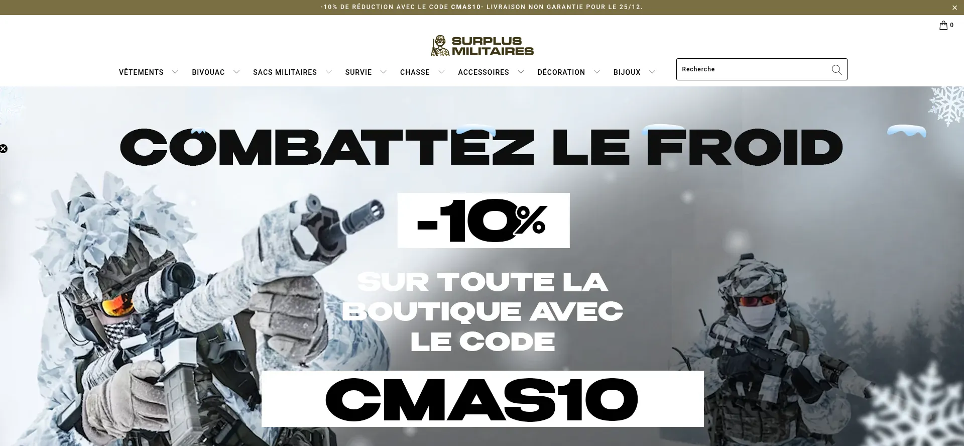 Surplus Militaires : Équipements, Sacs, Vêtements & Accessoires