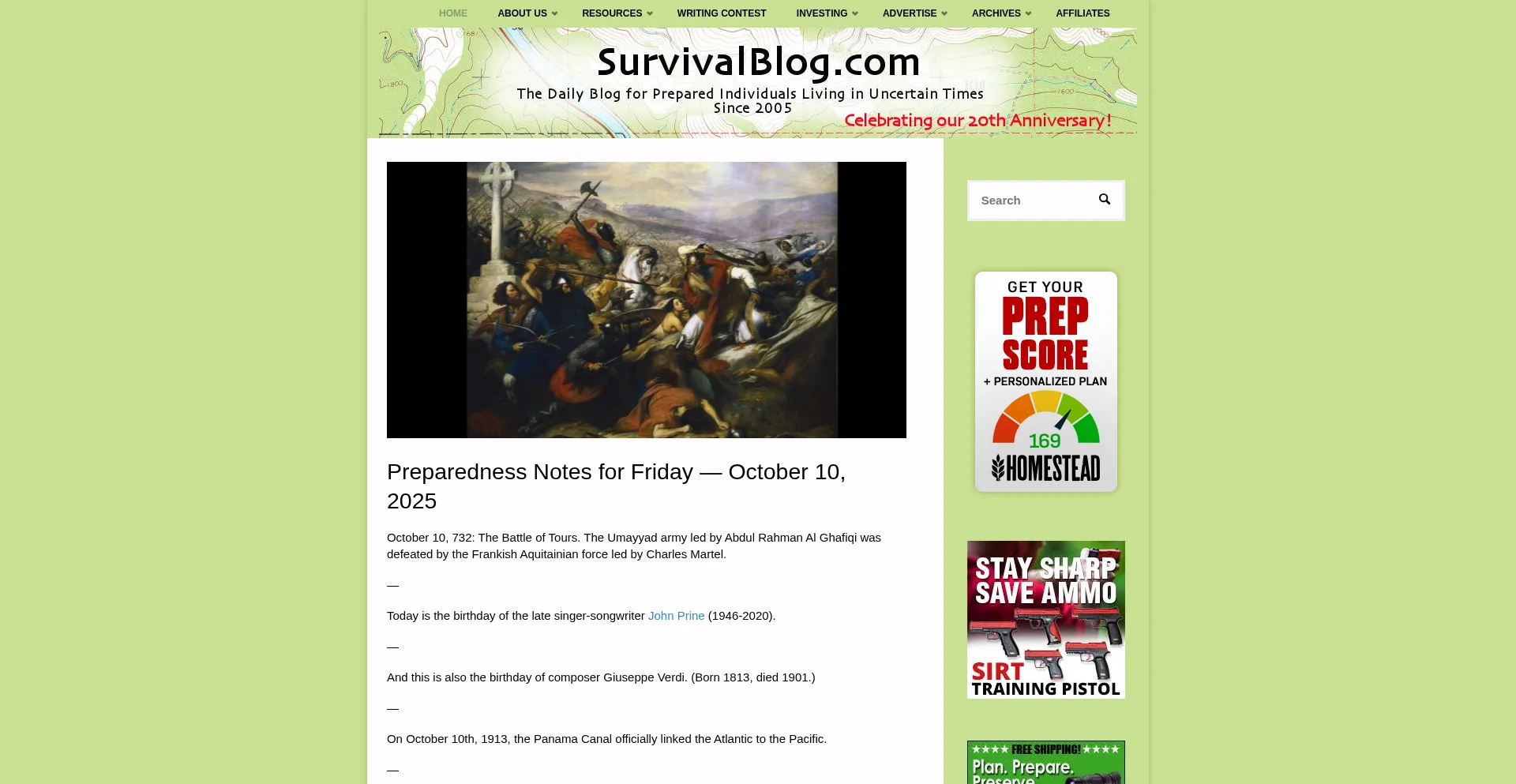 Survivalblog.com blocked? Check the safety report created on October 10, 2025