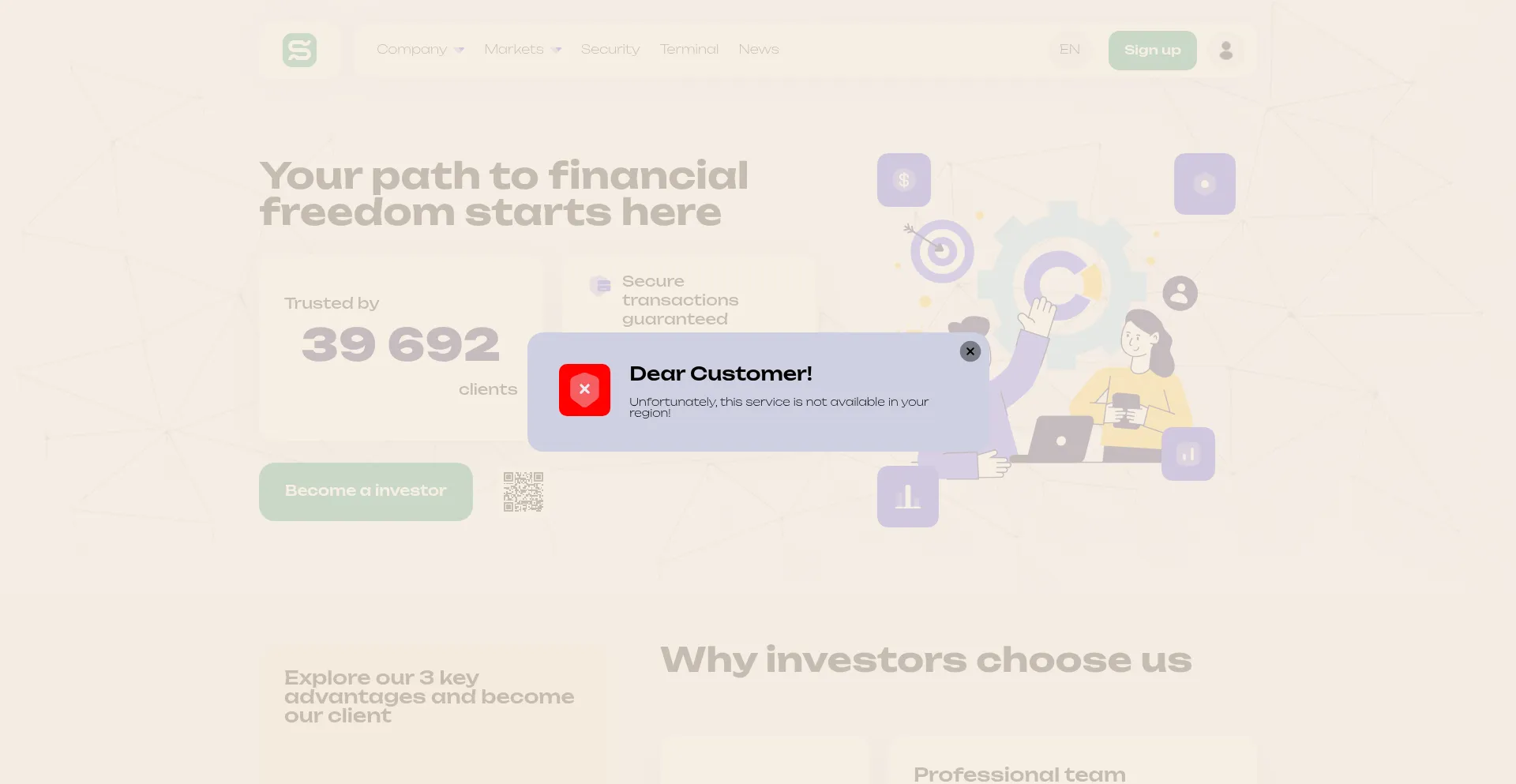 Cryptocurrency Financial Service Scam - Risk Registration Form Guides Established Domain