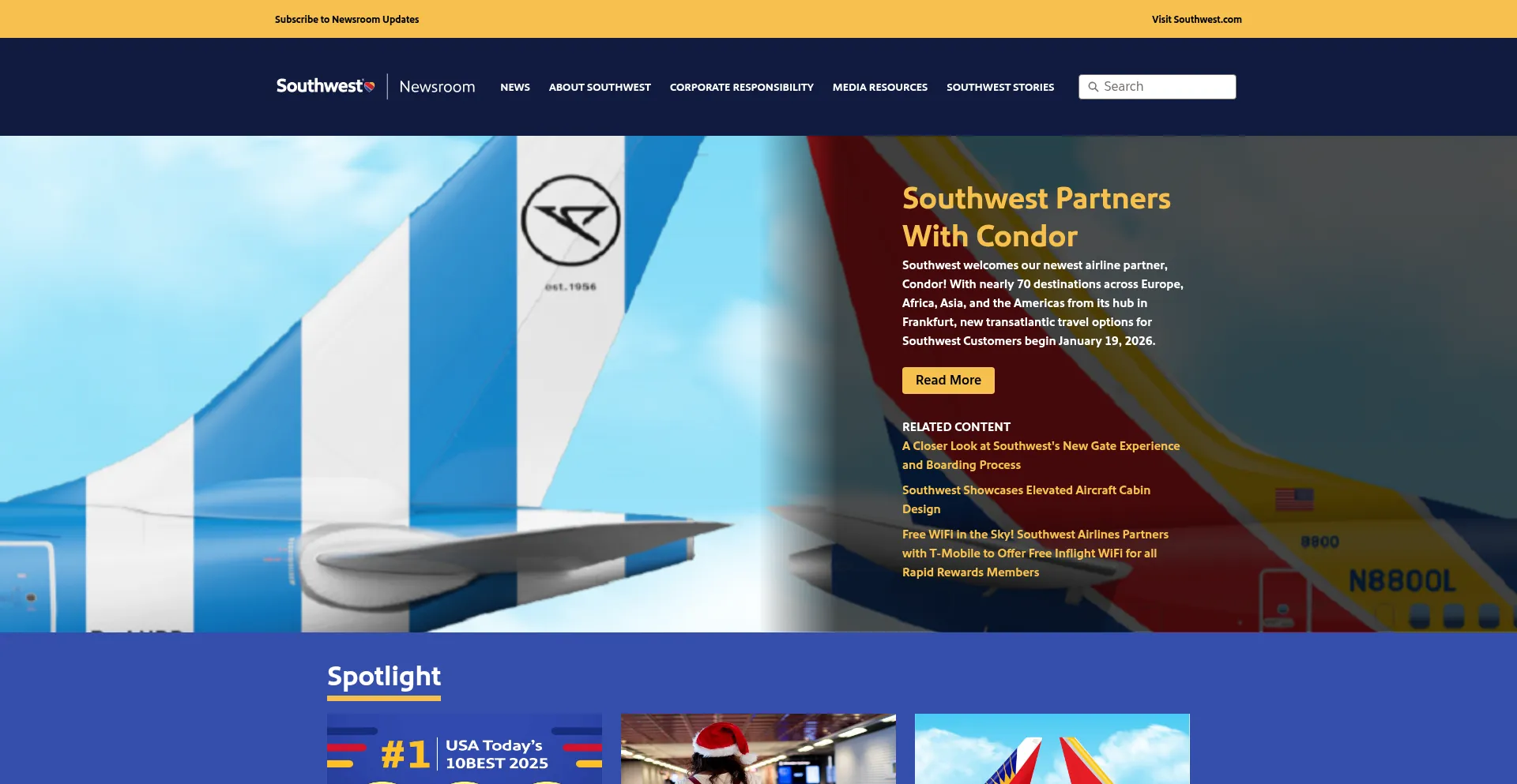 Southwest Airlines Newsroom delivering the latest Southwest Airlines News, Updates, Stories, and multimedia resources.