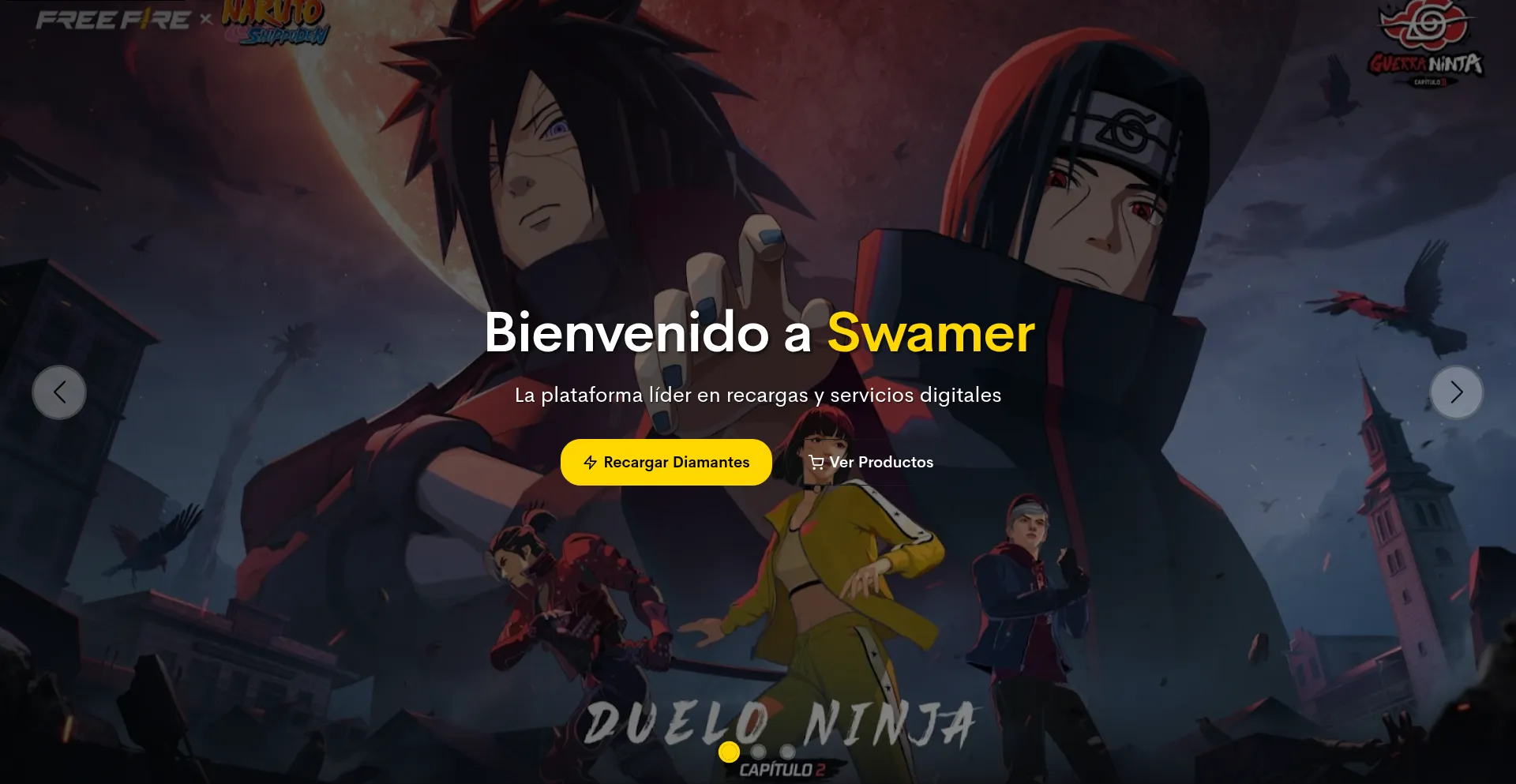 Swamer es la plataforma líder en recargas digitales. Recarga diamantes de forma segura y rápida con múltiples métodos de pago disponibles 24/7.