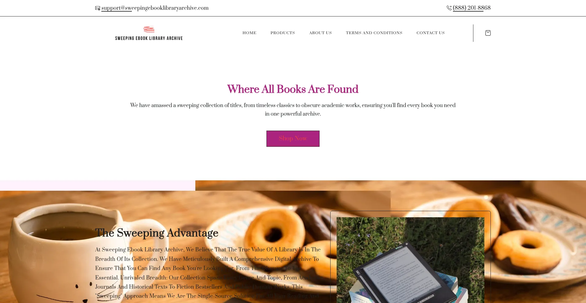 Analysis indicates that sweepingebooklibraryarchive.com operates as an e-commerce platform facilitating online transactions for goods or services. The website implements shopping cart functionality, payment processing systems, and product catalog features typical of commercial retail operations.