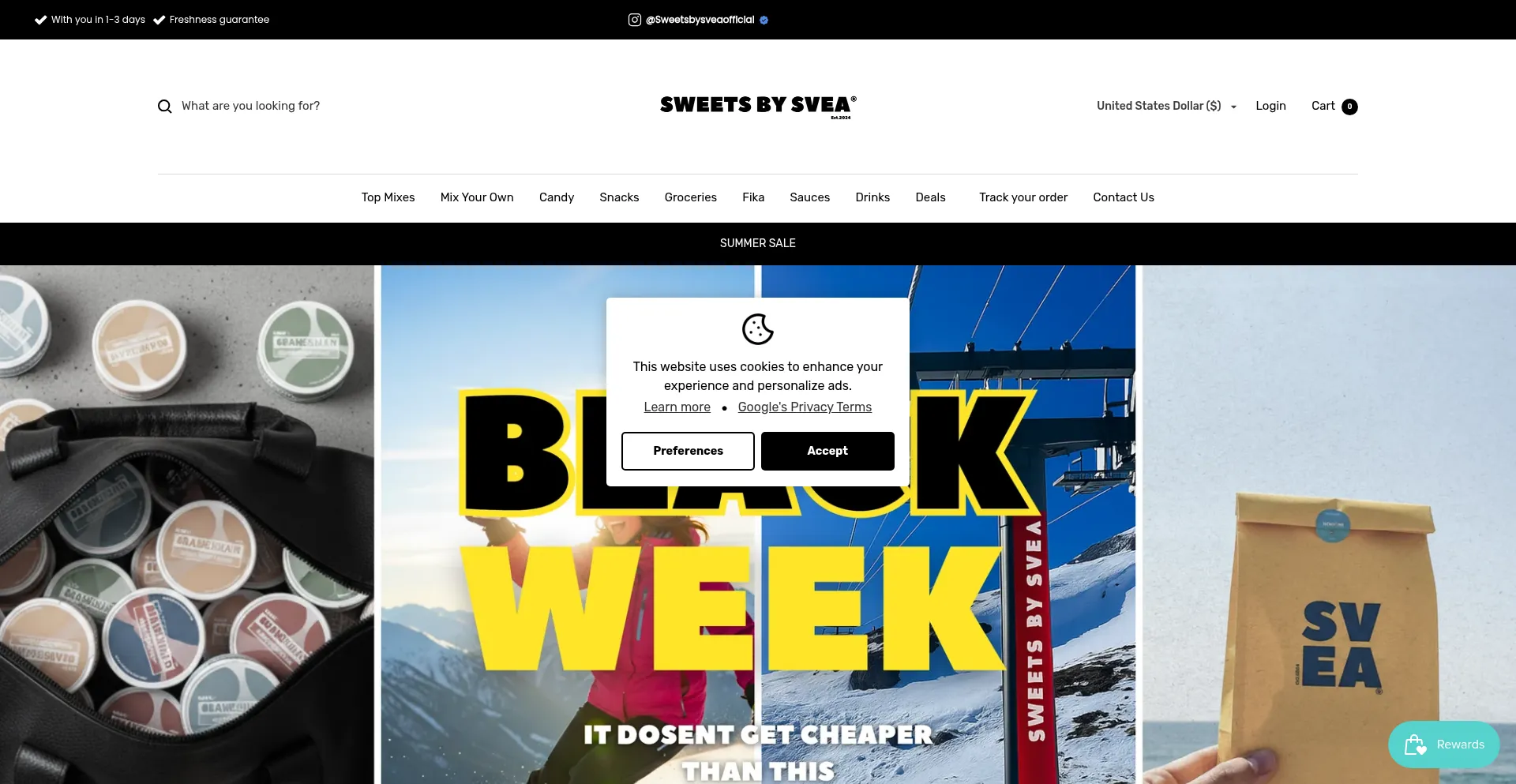 The website implements cookie consent mechanisms in compliance with privacy regulations such as GDPR or CCPA. This demonstrates that sweetsbysvea.com adheres to data protection standards and provides users with control over personal data collection practices.