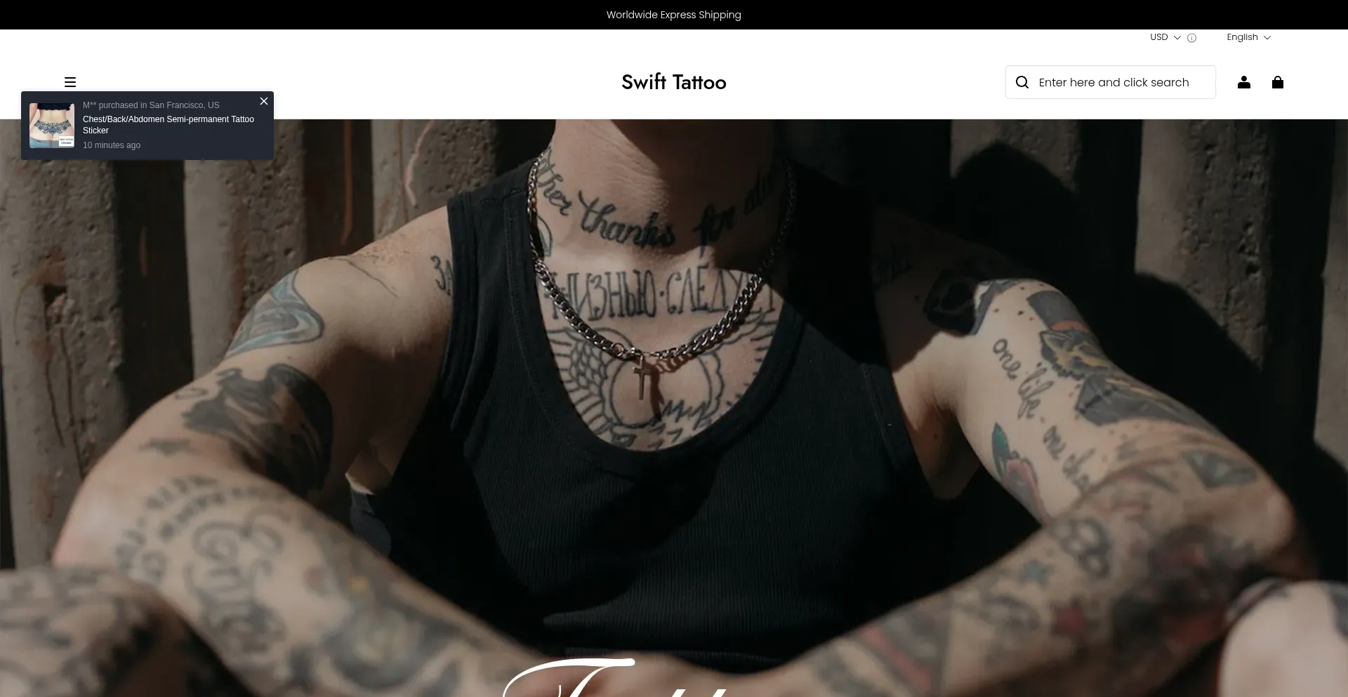 Analysis indicates that swifttattoo.com operates as an e-commerce platform facilitating online transactions for goods or services. The website implements shopping cart functionality, payment processing systems, and product catalog features typical of commercial retail operations.