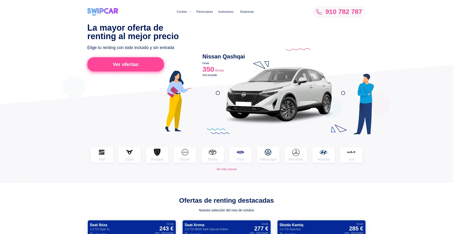 Las mejores Ofertas de Renting están en Swipcar. Sin entrada y todo incluido. Renting para Particulares, Empresas y Autónomos. ¡Pásate al Renting!