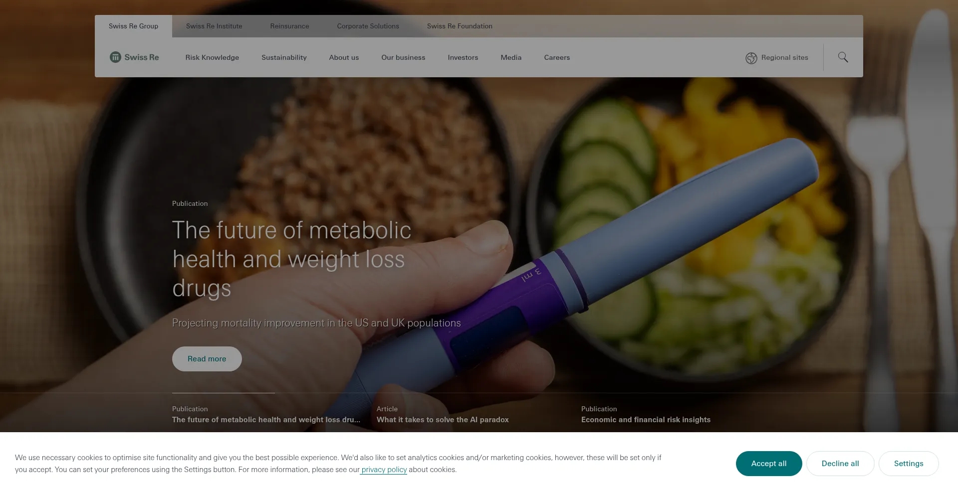 The website implements cookie consent mechanisms in compliance with privacy regulations such as GDPR or CCPA. This demonstrates that swissre.com adheres to data protection standards and provides users with control over personal data collection practices.
