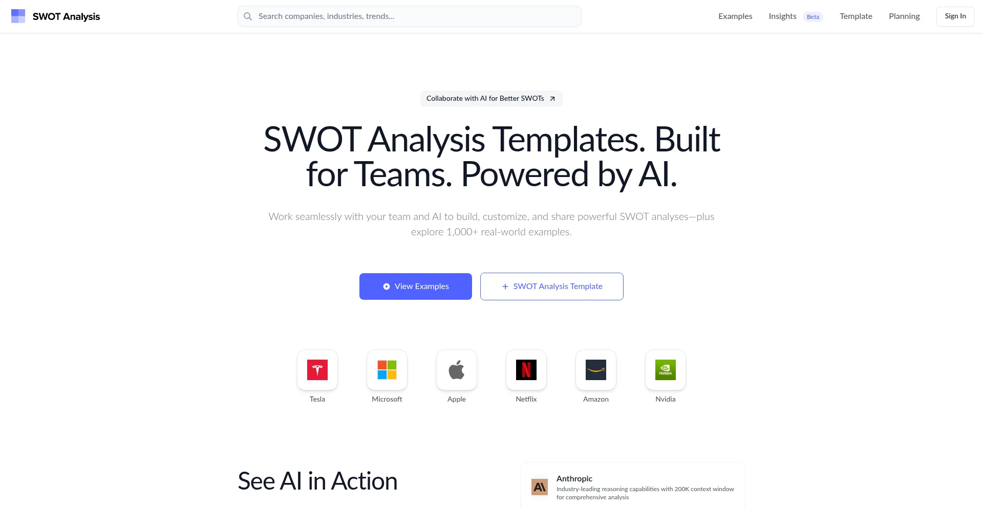 AI-Powered SWOT Analysis Templates & Strategic Planning | SWOTAnalysis.com