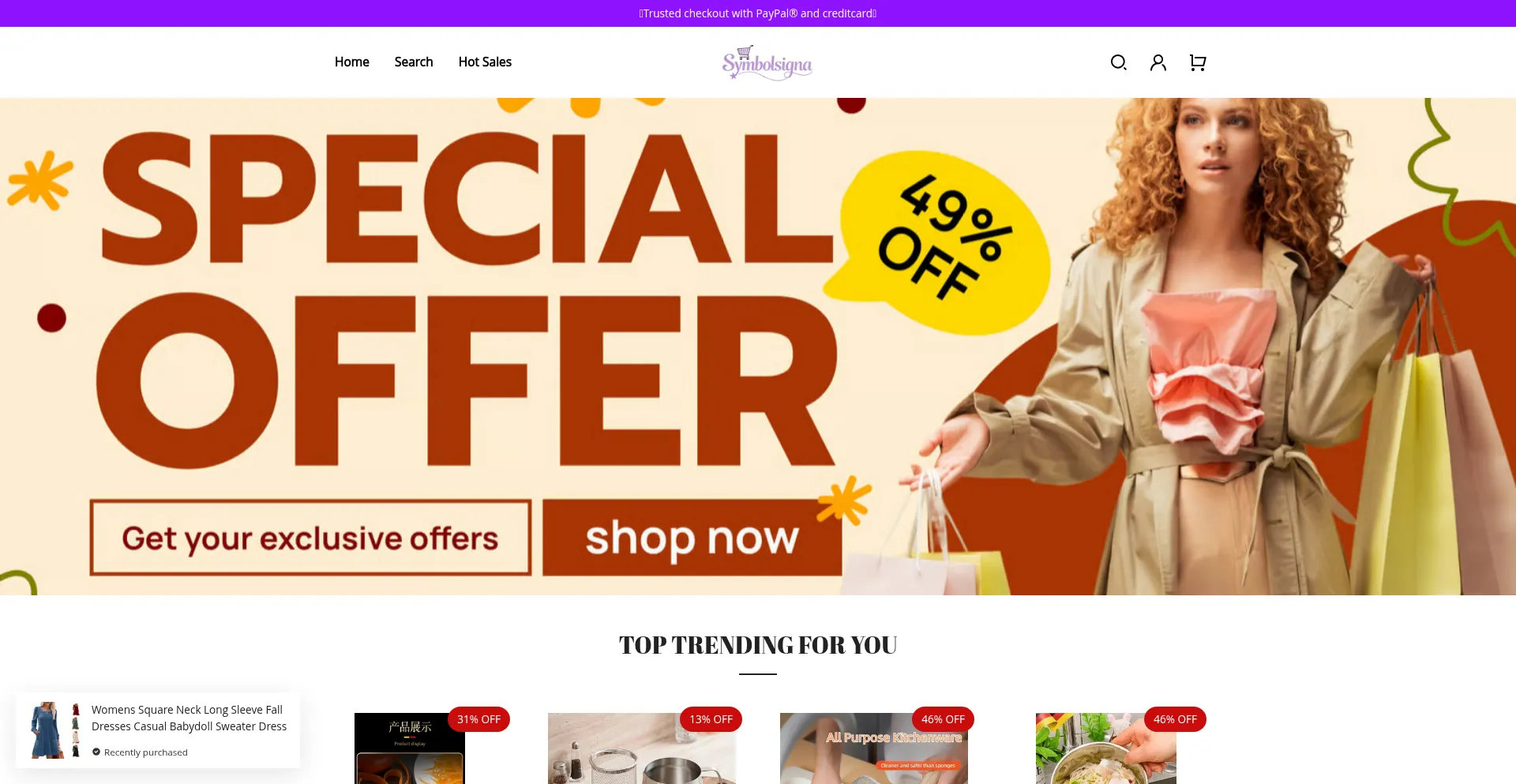 Analysis indicates that symbolsigna.com operates as an e-commerce platform facilitating online transactions for goods or services. The website implements shopping cart functionality, payment processing systems, and product catalog features typical of commercial retail operations.