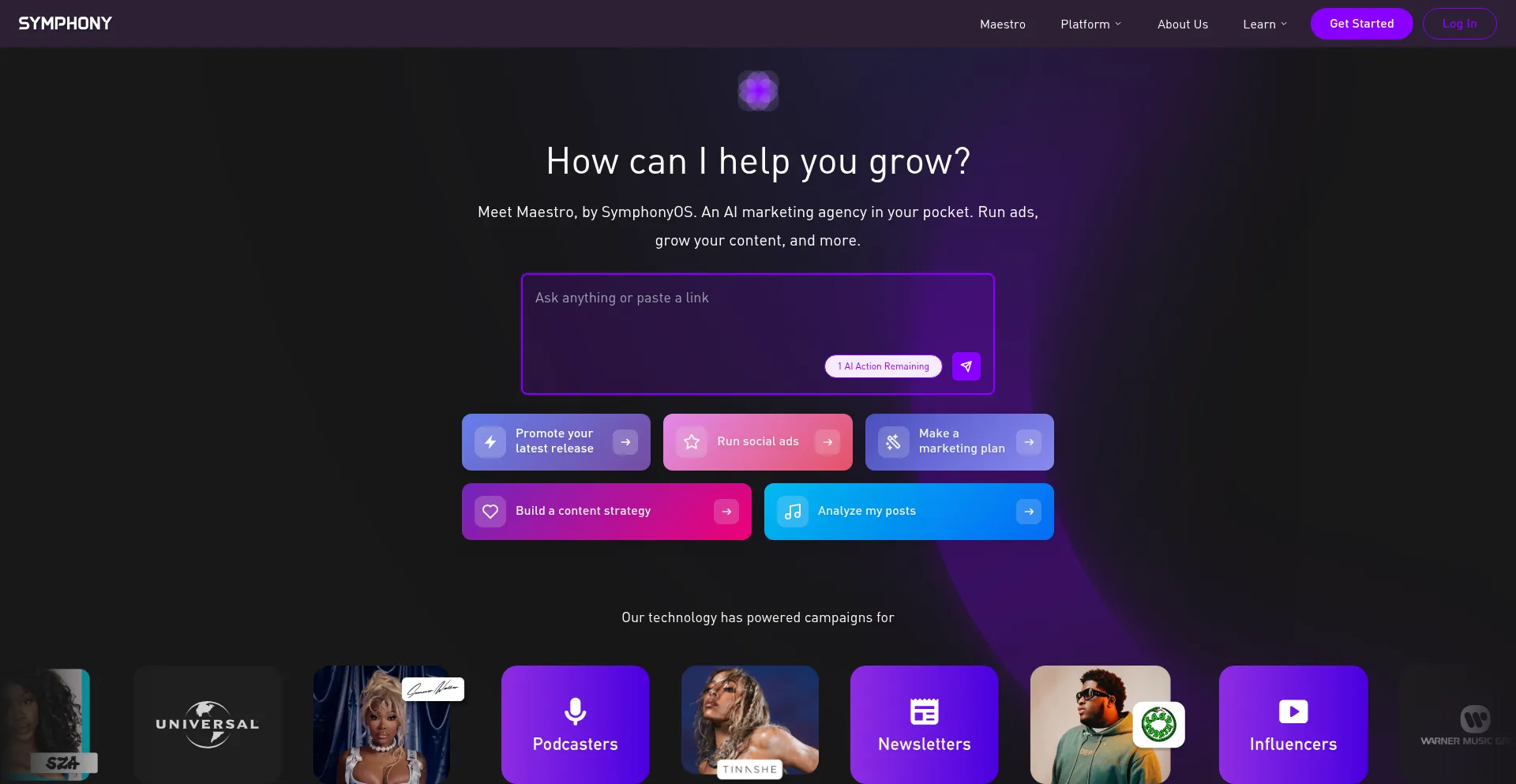 SymphonyOS is the easiest way to grow your views, streams, and subscribers. Smart automated marketing, all on-the-go.