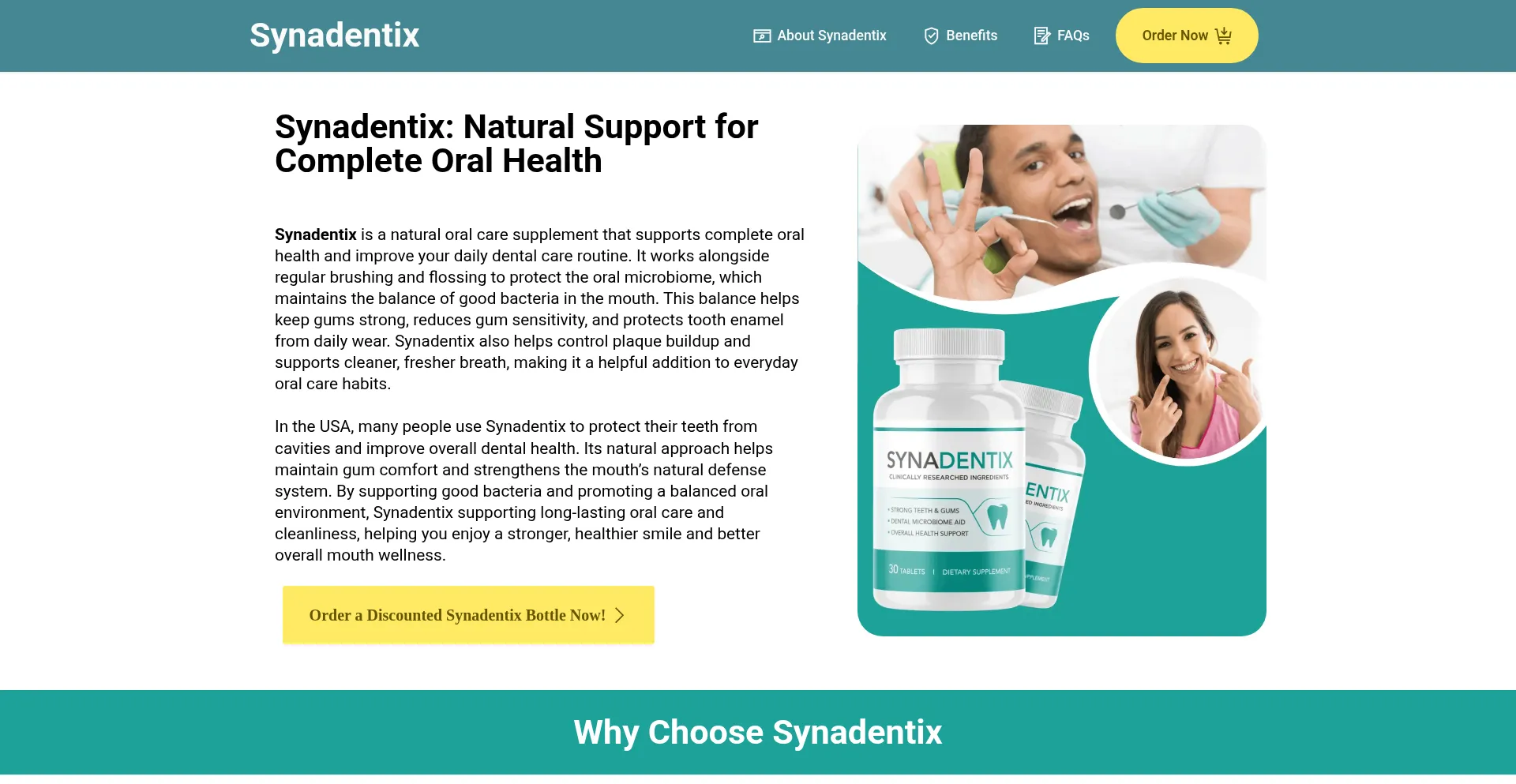 Synadentix is a natural dental care supplement that supports healthy gums, reduces sensitivity, controls plaque, and promotes a balanced oral microbiome.