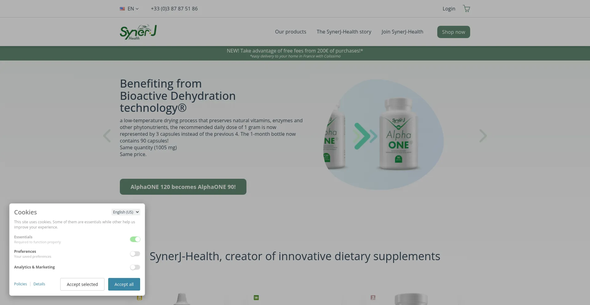 Analysis indicates that synerj-health.com operates as an e-commerce platform facilitating online transactions for goods or services. The website implements shopping cart functionality, payment processing systems, and product catalog features typical of commercial retail operations.