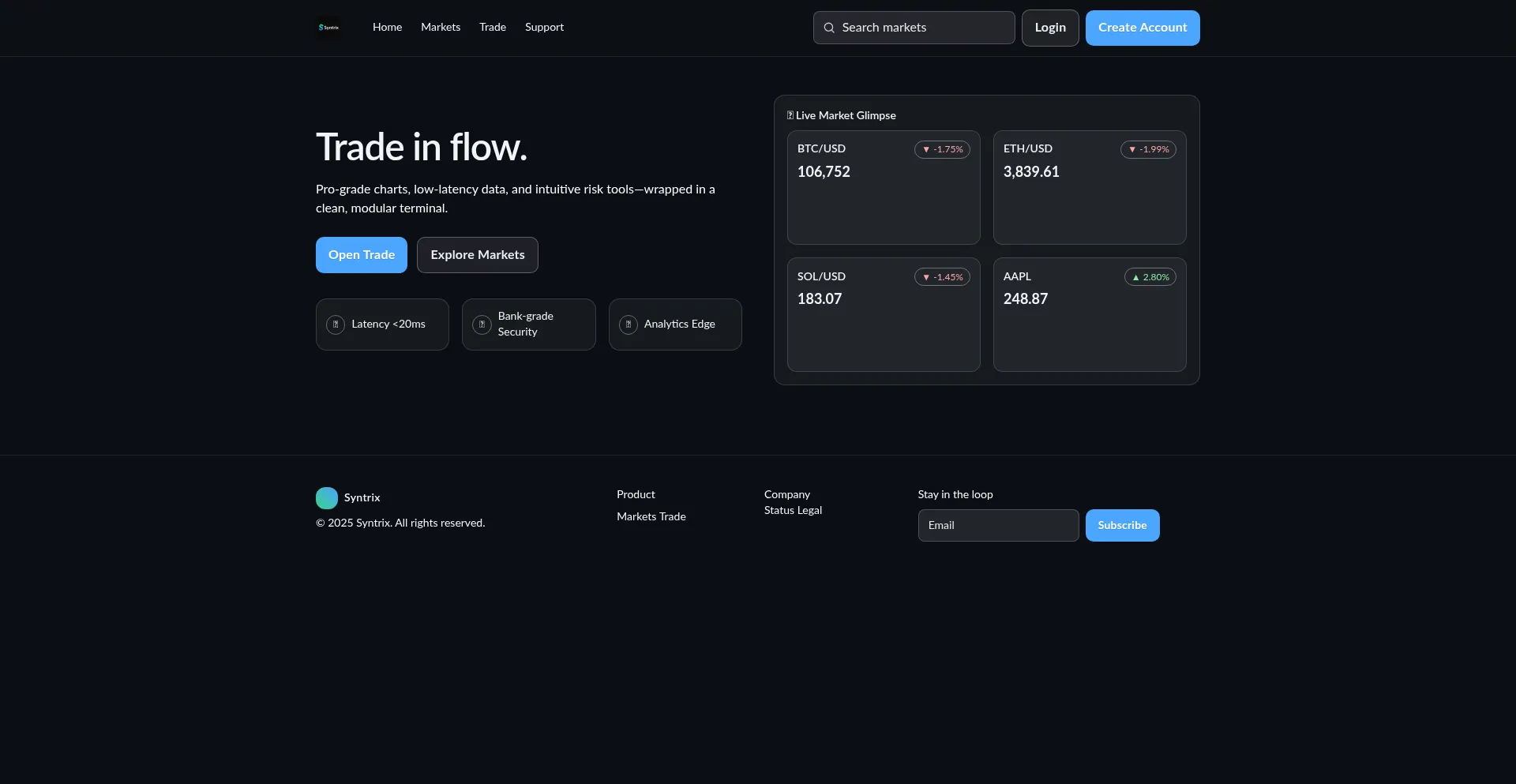Pro‑grade charts, low‑latency data, and intuitive risk tools—wrapped in a clean, modular terminal.