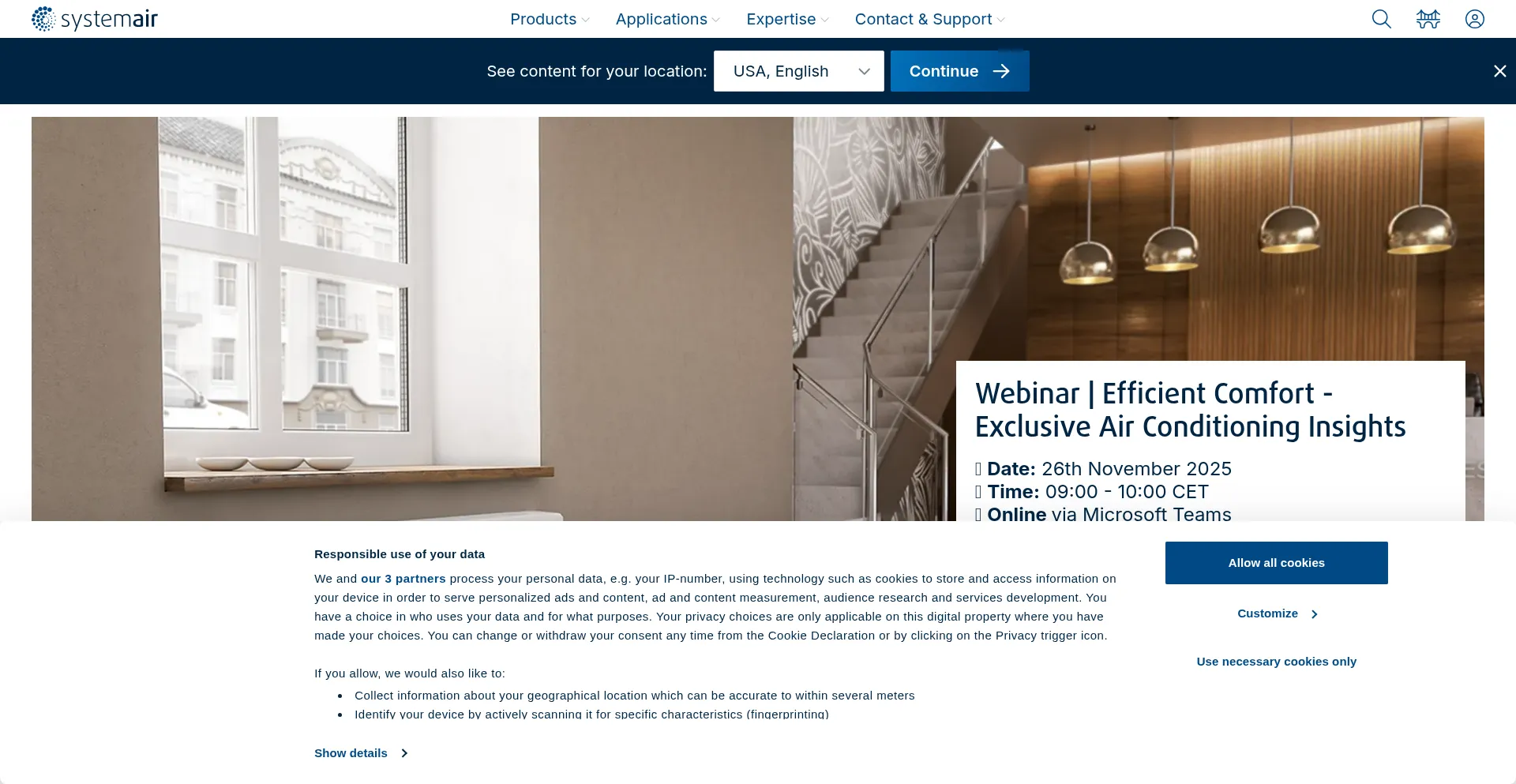 The website implements cookie consent mechanisms in compliance with privacy regulations such as GDPR or CCPA. This demonstrates that systemair.com adheres to data protection standards and provides users with control over personal data collection practices.