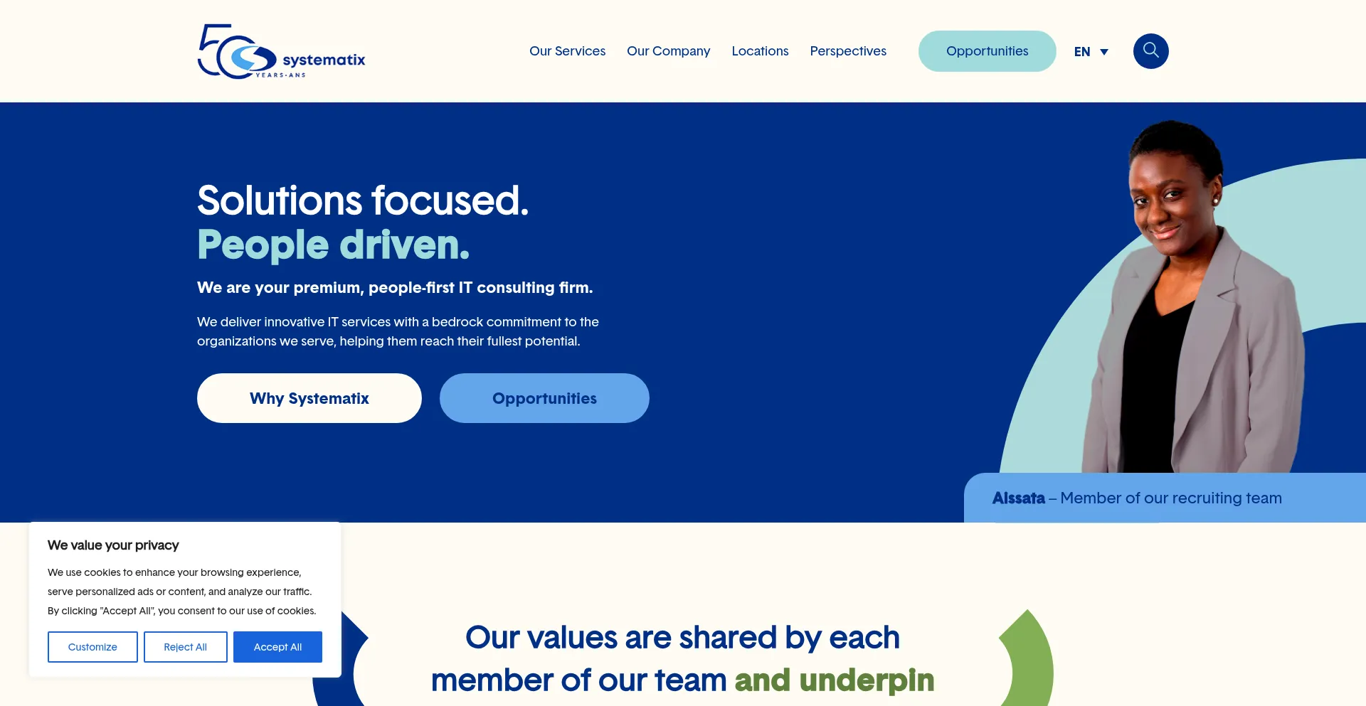 The website implements cookie consent mechanisms in compliance with privacy regulations such as GDPR or CCPA. This demonstrates that systematix.com adheres to data protection standards and provides users with control over personal data collection practices.