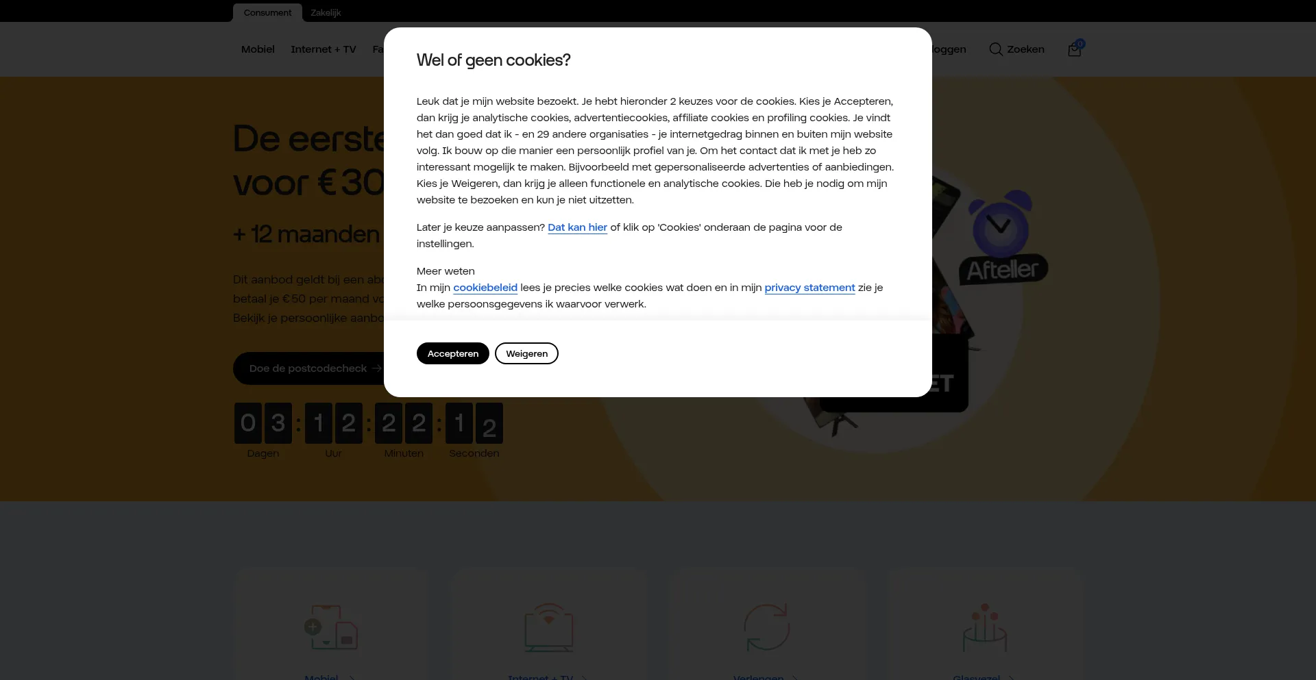 The t-mobile.nl website uses Google Tag Manager to add and update tracking tags on its website.