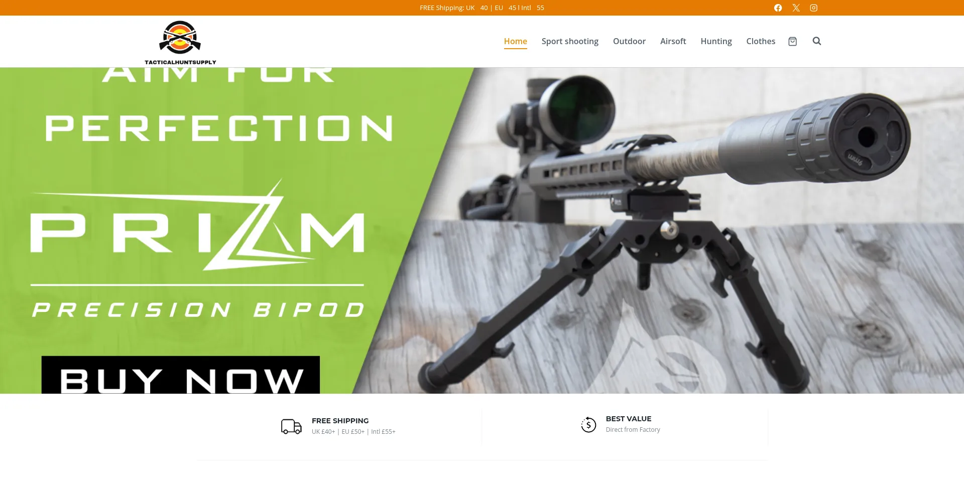 Analysis reveals that tacticalhuntsupply.com displays social media icons or links that do not connect to legitimate social media profiles. This deceptive practice is commonly employed to create false legitimacy and represents a significant indicator of fraudulent intent requiring immediate caution.