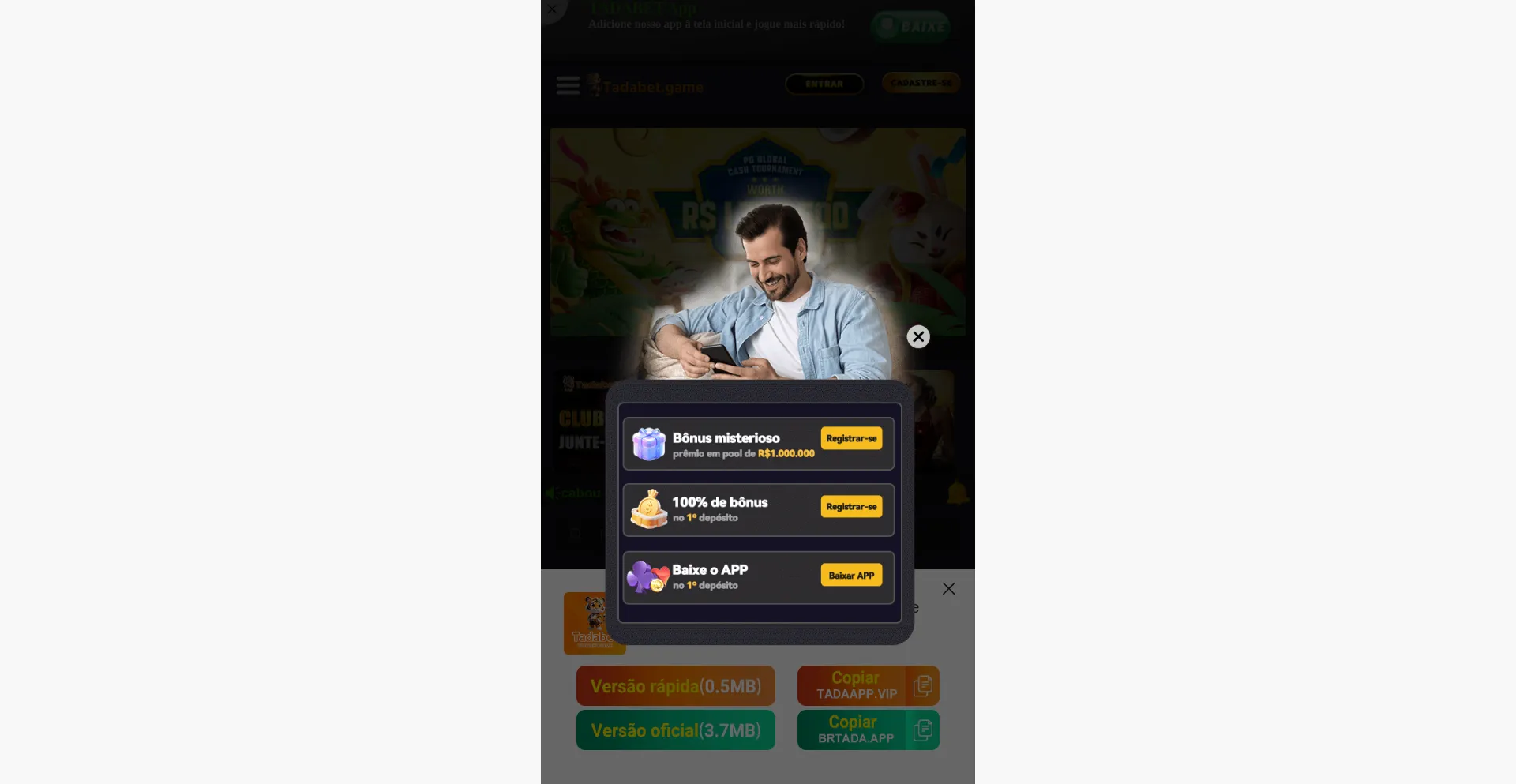 TADABETGame oferece o melhor dos populares jogos de cassino. Virtual, Caça-níqueis, Futebol, Poker, Crash, Roleta e Roda da Fortuna! Come join me, become the next millionaire