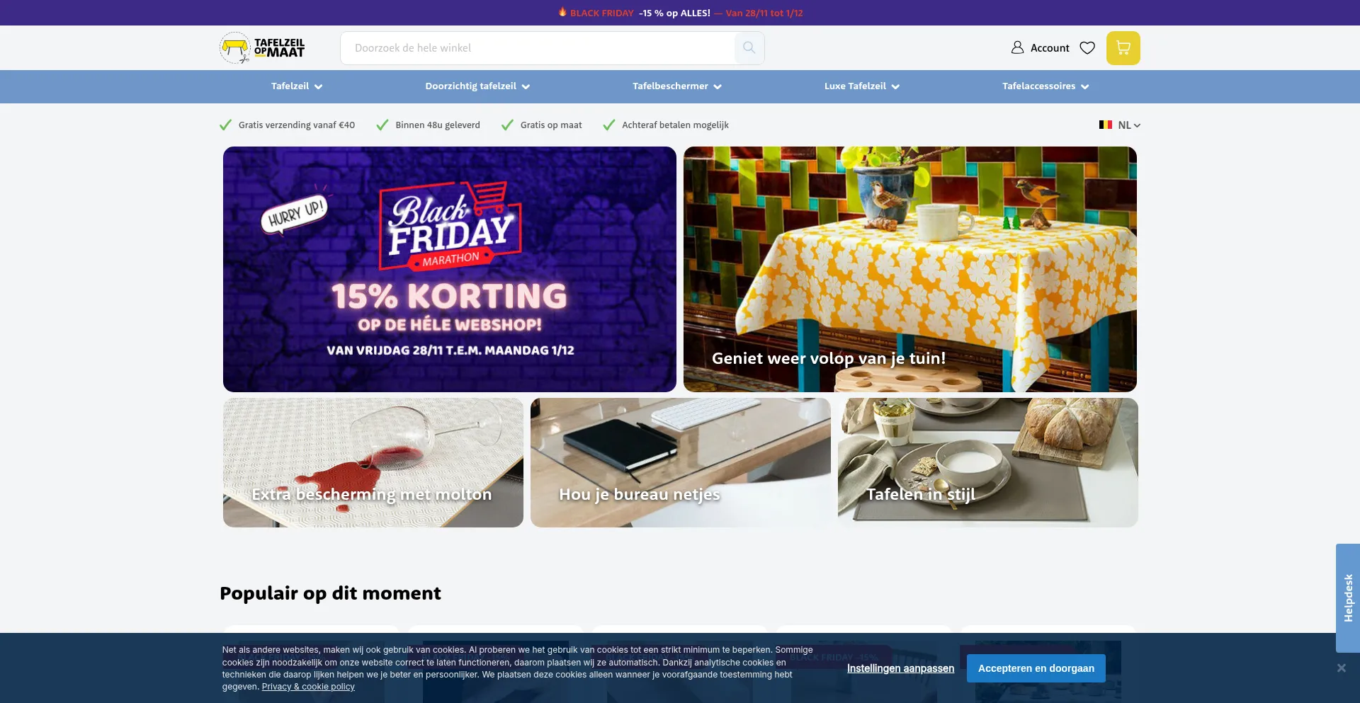 Analysis indicates that tafelzeilopmaat.be operates as an e-commerce platform facilitating online transactions for goods or services. The website implements shopping cart functionality, payment processing systems, and product catalog features typical of commercial retail operations.