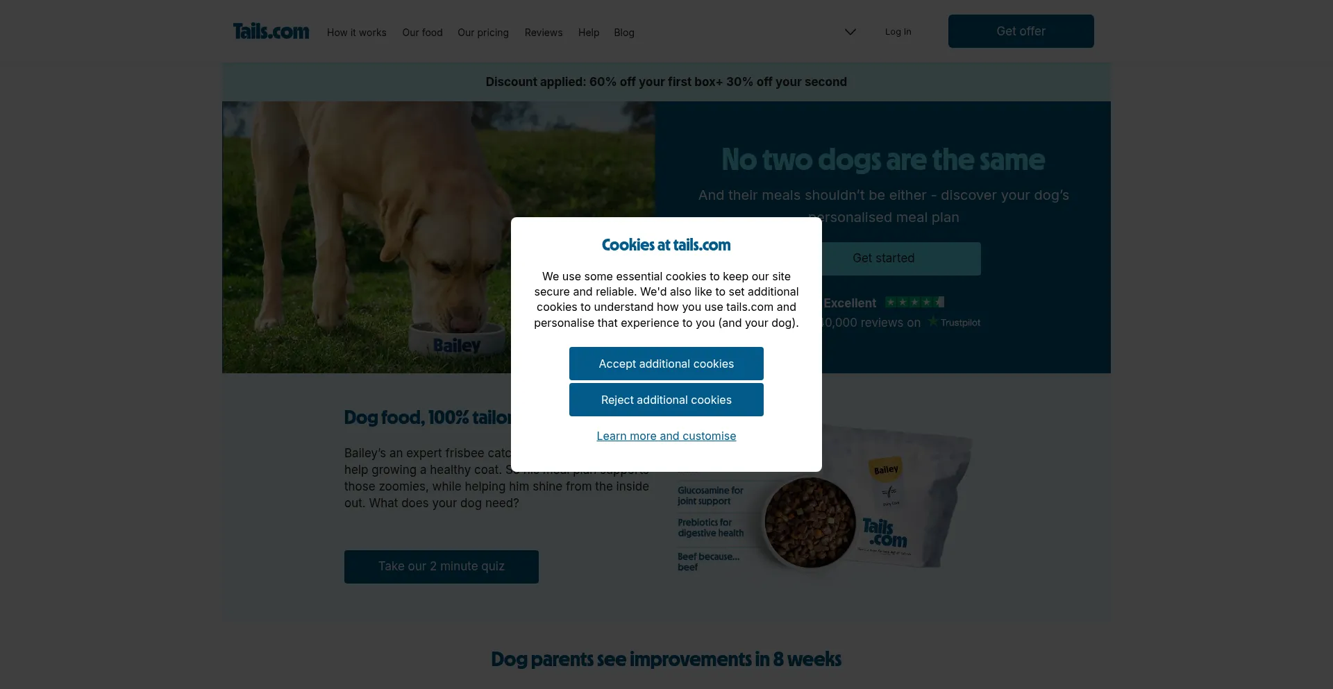 The website implements cookie consent mechanisms in compliance with privacy regulations such as GDPR or CCPA. This demonstrates that tails.com adheres to data protection standards and provides users with control over personal data collection practices.