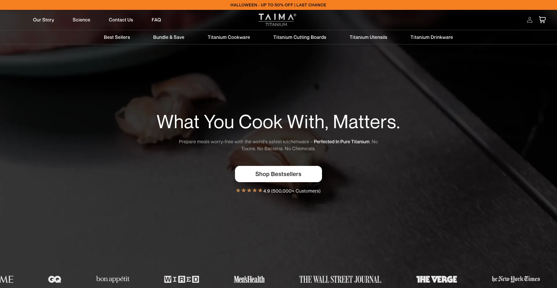 The taimatitanium.com website uses Google Tag Manager to add and update tracking tags on its website.