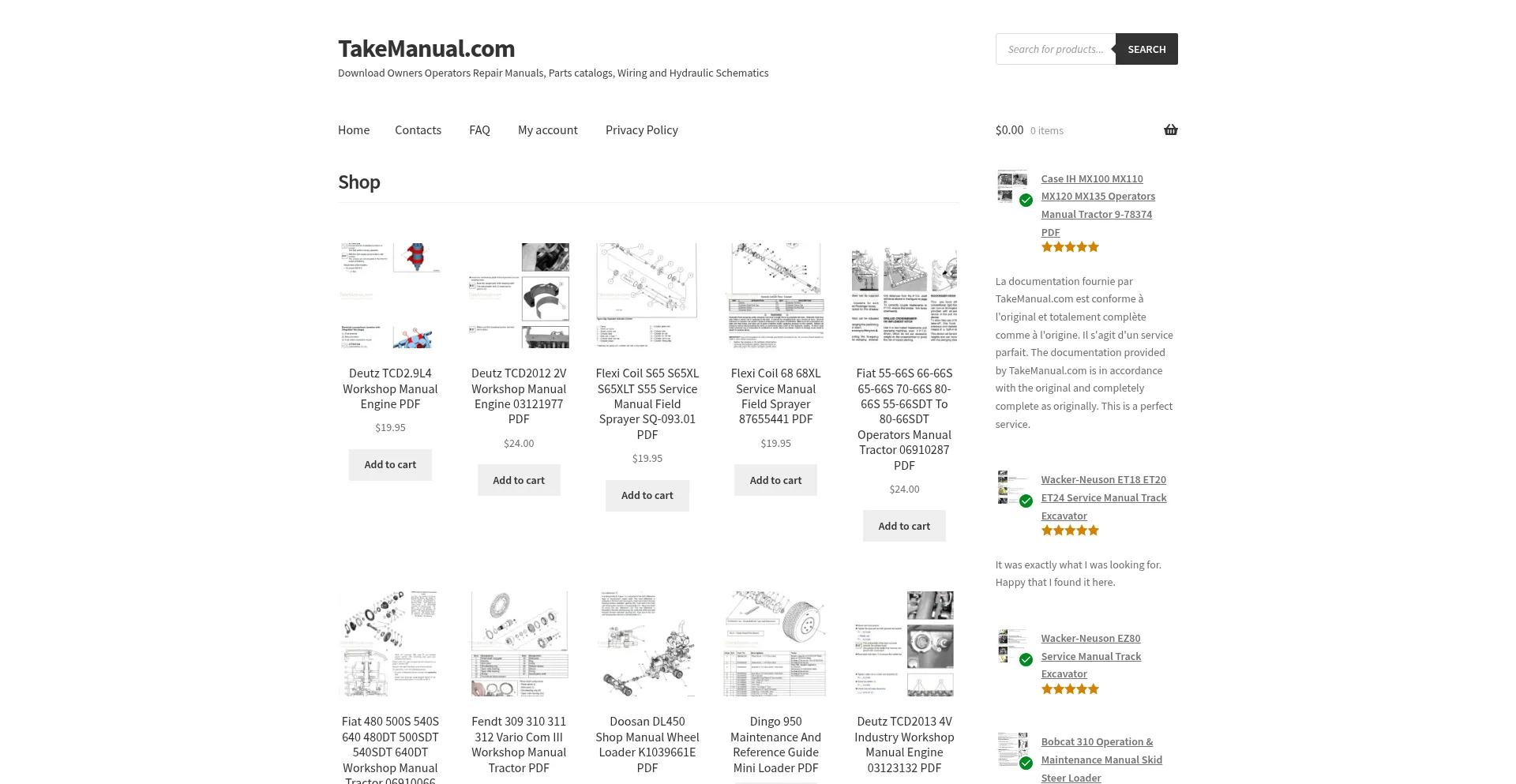 Analysis indicates that takemanual.com operates as an e-commerce platform facilitating online transactions for goods or services. The website implements shopping cart functionality, payment processing systems, and product catalog features typical of commercial retail operations.