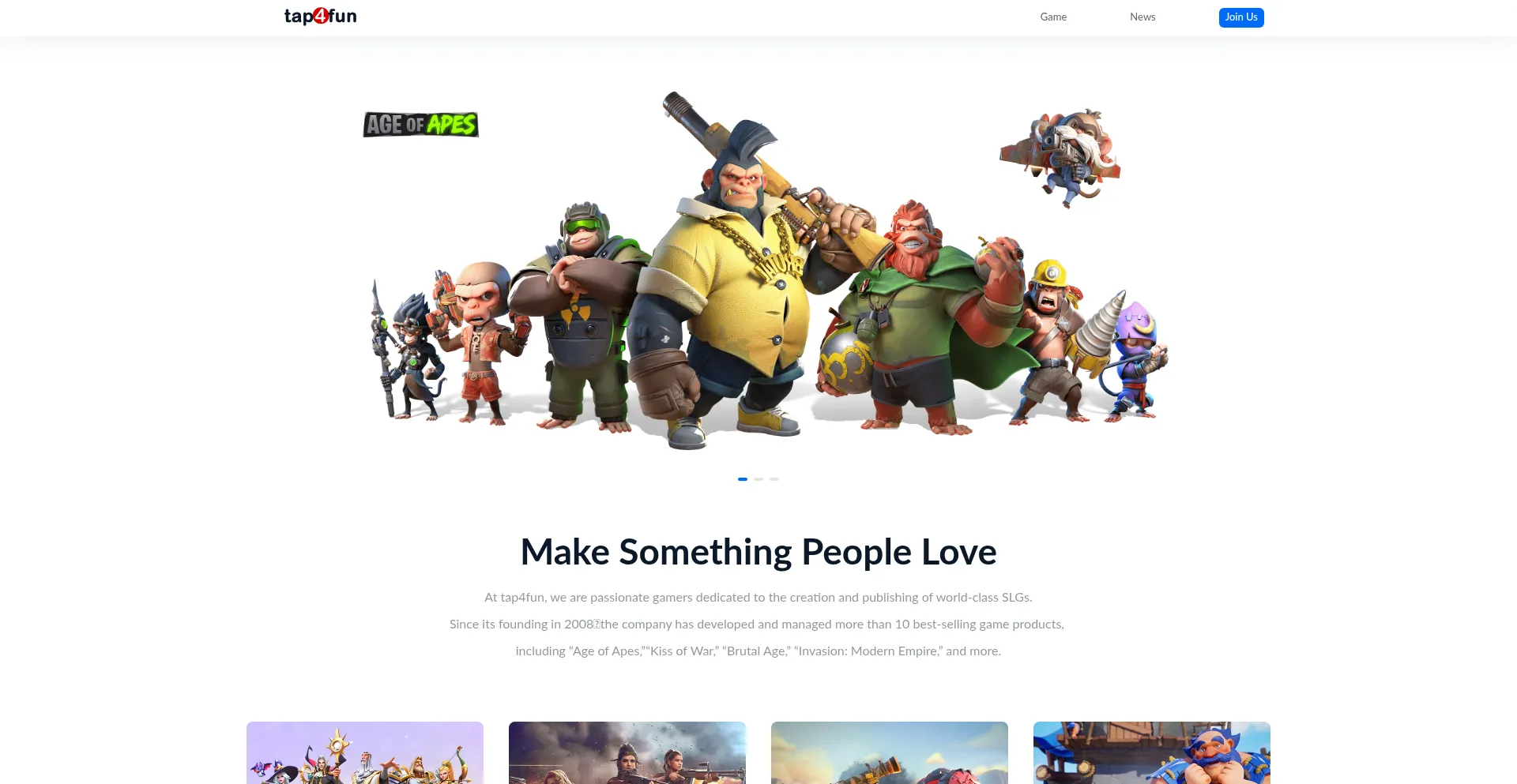 The tap4fun.com website offers a mobile application for Android devices, indicating expanded platform presence beyond web-based services.
