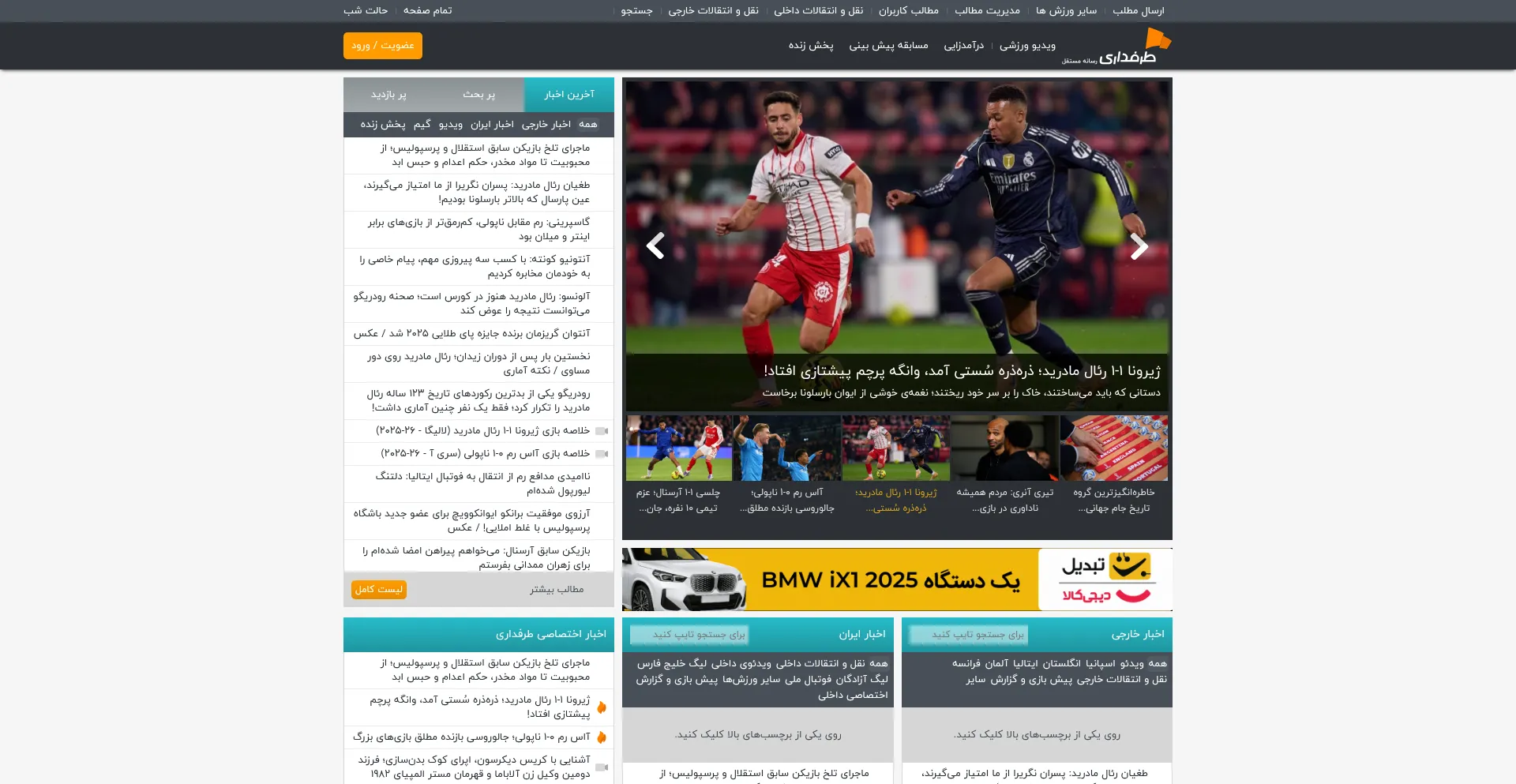 پایگاه اخبار ورزش ایران و جهان، به همراه جدول، نتایج زنده، برنامه بازی ها، ویدیو ورزشی، مسابقه پی...