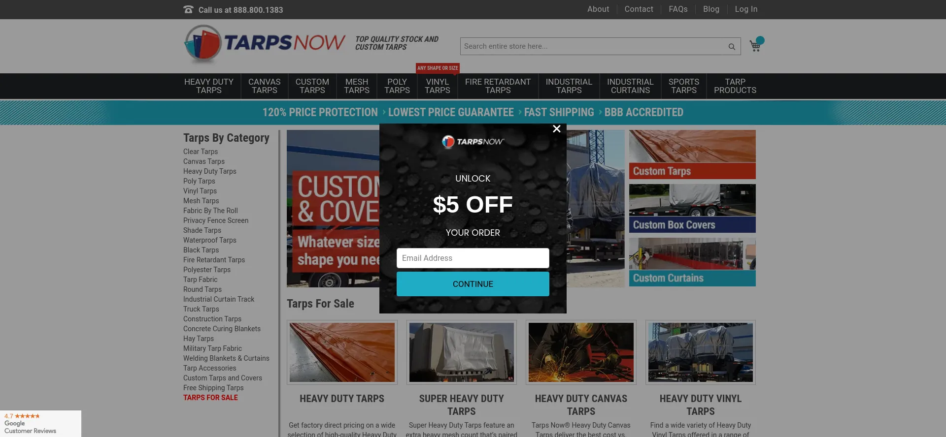Save up to 70% off on tarps with fast shipping! Get factory direct prices on heavy duty, vinyl and canvas tarps!