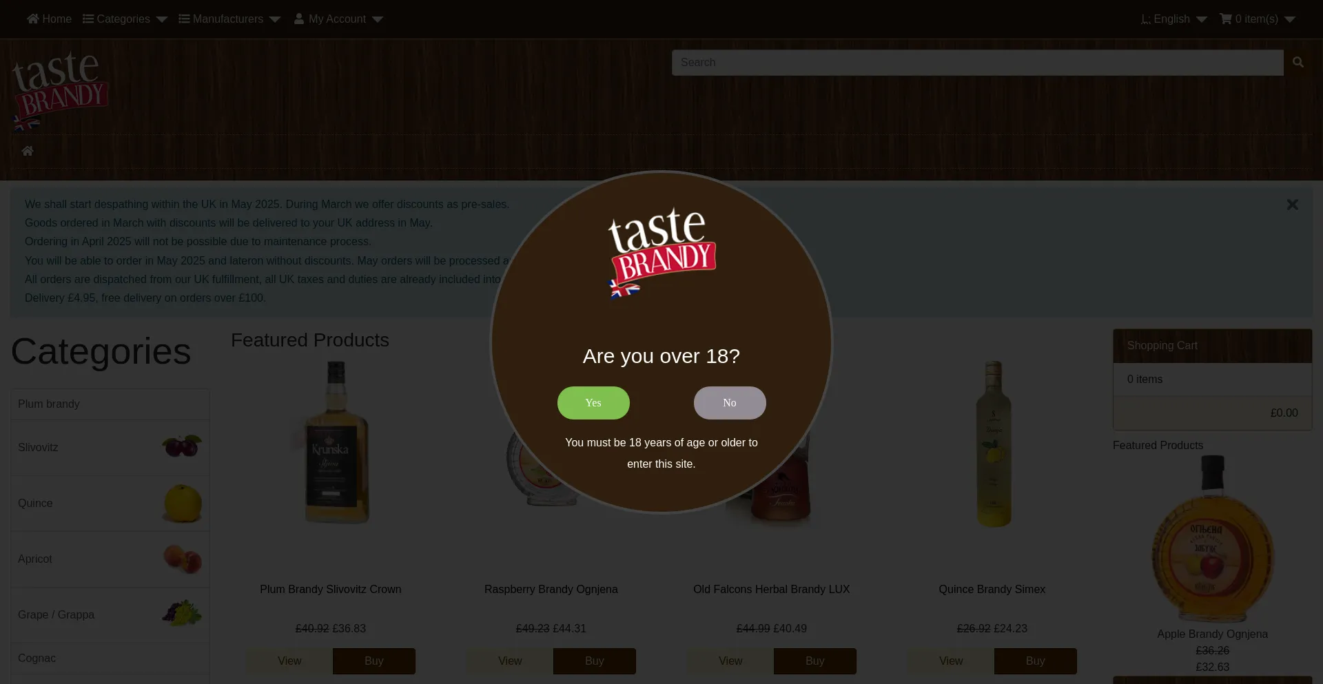 Analysis indicates that tastebrandy.co.uk operates as an e-commerce platform facilitating online transactions for goods or services. The website implements shopping cart functionality, payment processing systems, and product catalog features typical of commercial retail operations.
