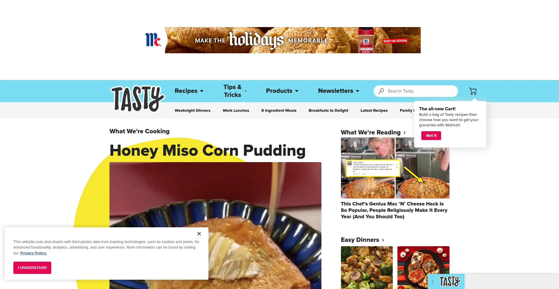 The website implements cookie consent mechanisms in compliance with privacy regulations such as GDPR or CCPA. This demonstrates that tasty.co adheres to data protection standards and provides users with control over personal data collection practices.