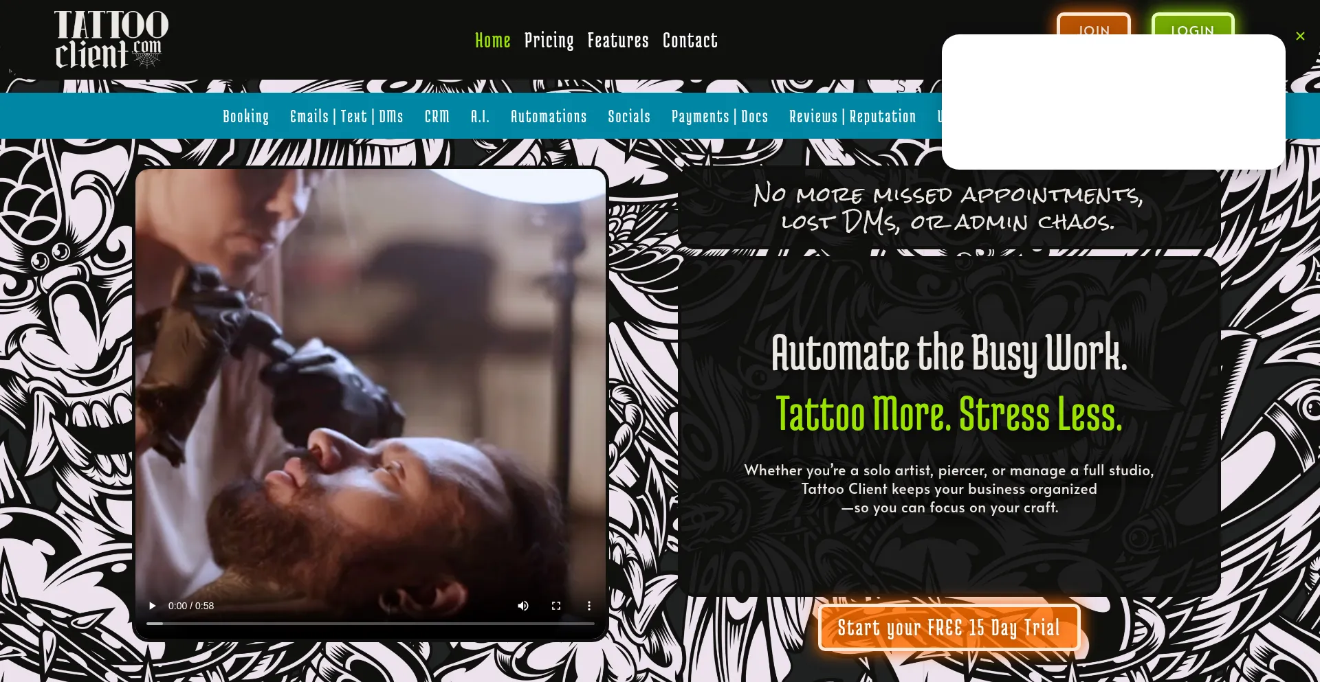 The tattooclient.com website uses Google Tag Manager to add and update tracking tags on its website.