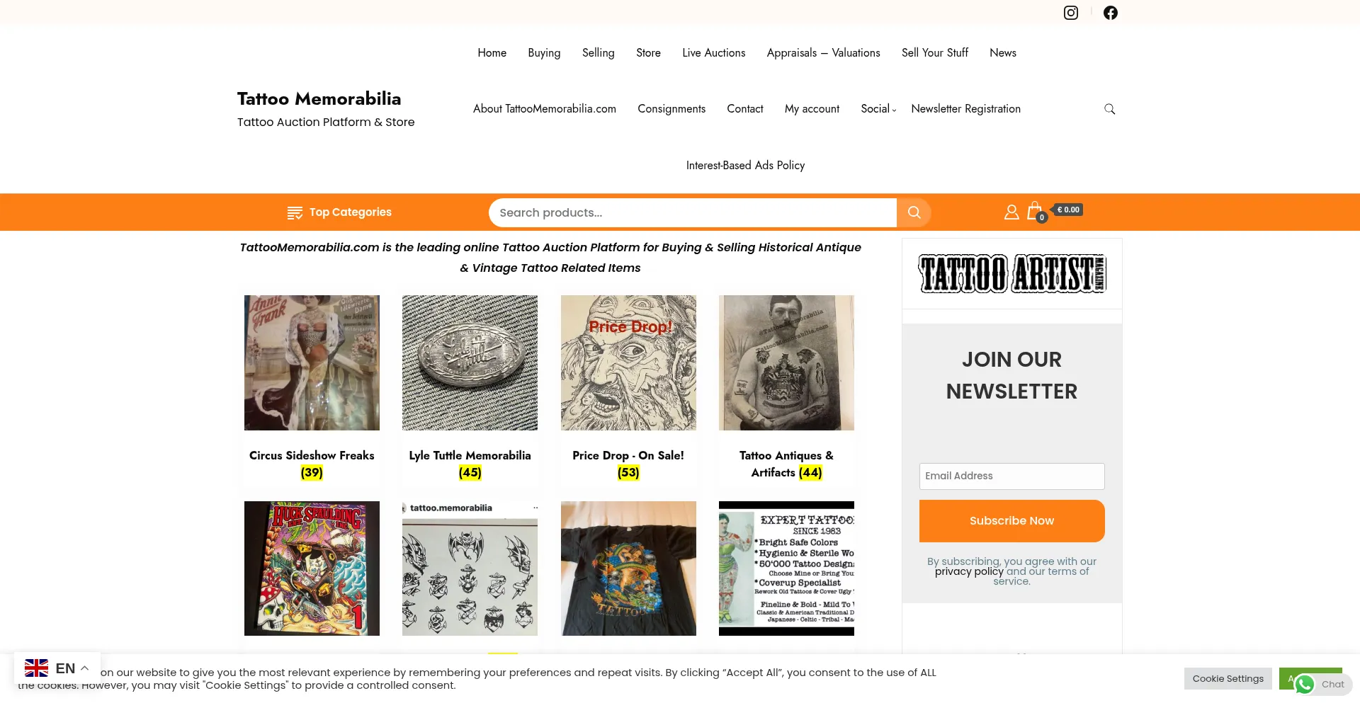 Shop - tattoo memorabilia, tattoo auction, antique-vintage, for sale.