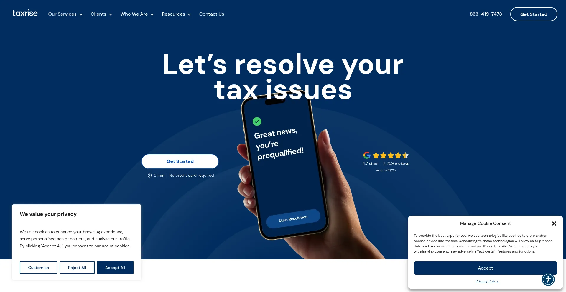The website implements cookie consent mechanisms in compliance with privacy regulations such as GDPR or CCPA. This demonstrates that taxrise.com adheres to data protection standards and provides users with control over personal data collection practices.