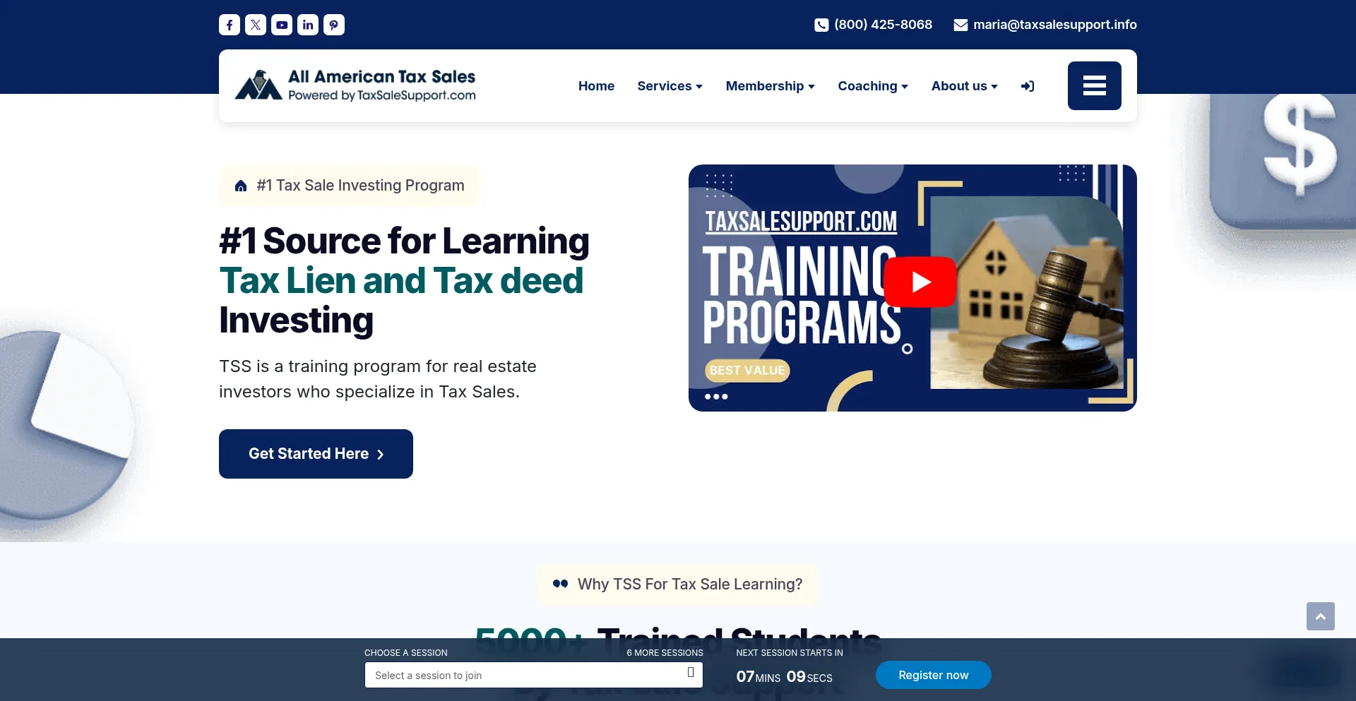 Tax Sale Support offers the best Tax Sale Support, Online Tax Lien, Tax Deed Investing Training Program. Without any risk, Membership comes with a 30-Day Money Back Guarantee. C...