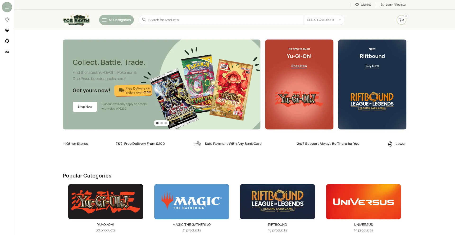 Analysis indicates that tcghaven.com operates as an e-commerce platform facilitating online transactions for goods or services. The website implements shopping cart functionality, payment processing systems, and product catalog features typical of commercial retail operations.