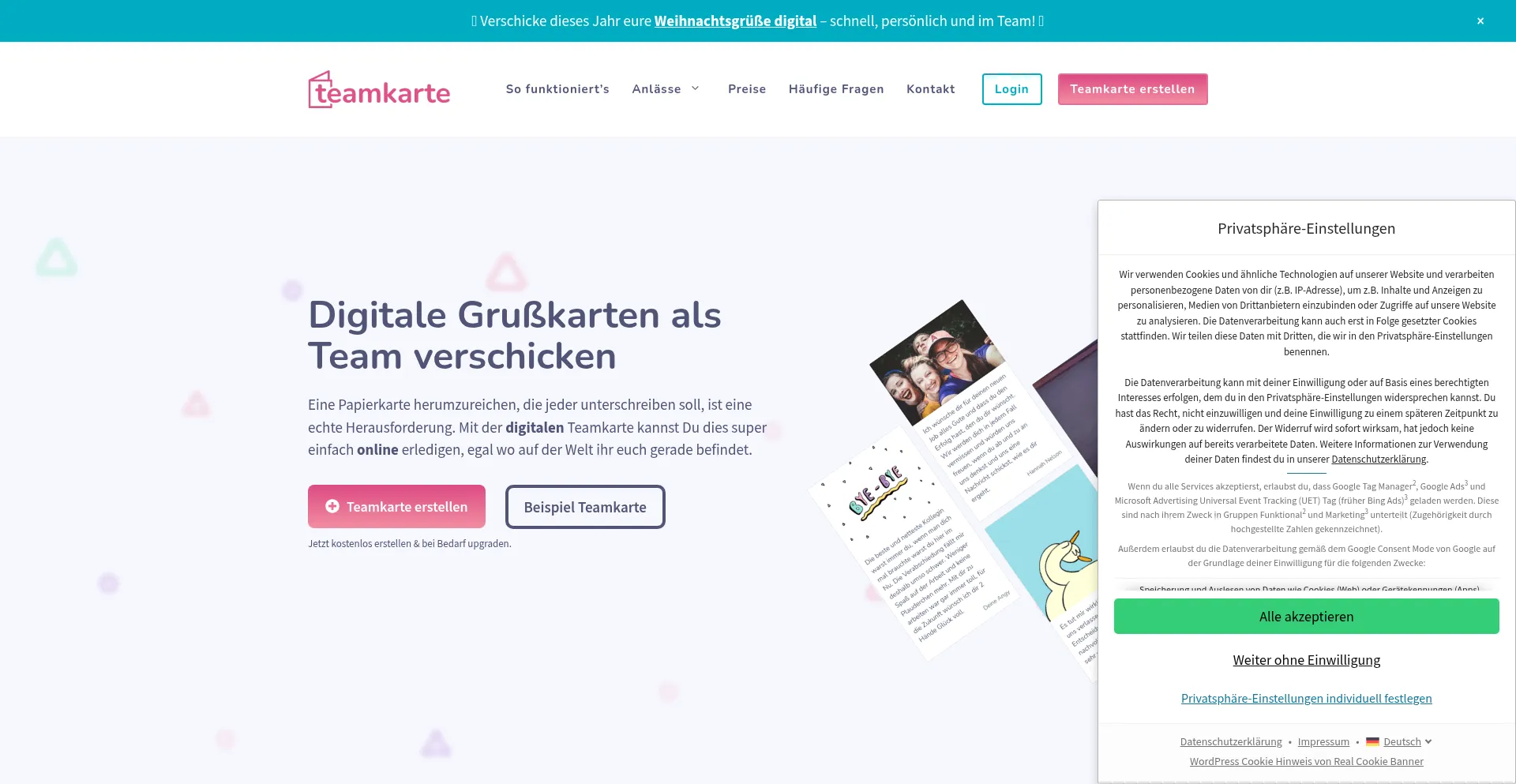 teamkarte.de – Digitale Grußkarten für Gruppen & Teams