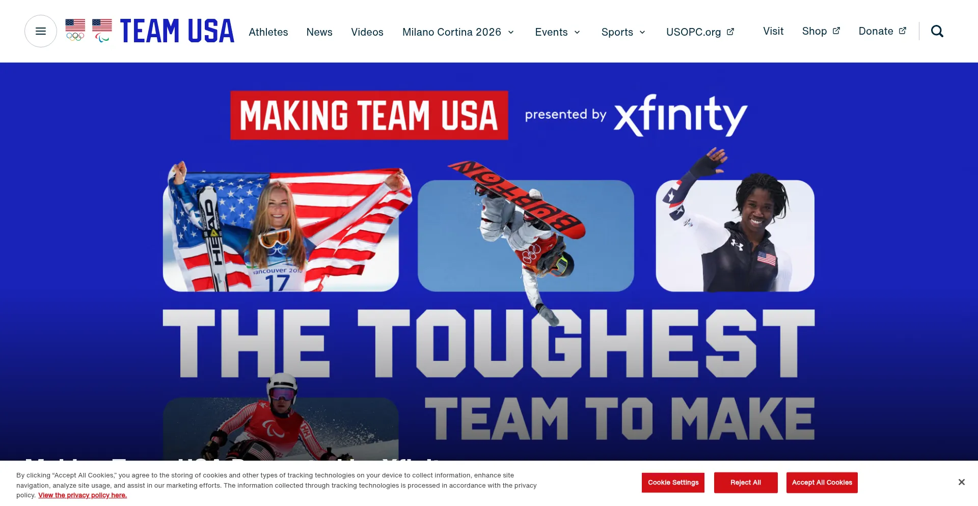The website implements cookie consent mechanisms in compliance with privacy regulations such as GDPR or CCPA. This demonstrates that teamusa.com adheres to data protection standards and provides users with control over personal data collection practices.