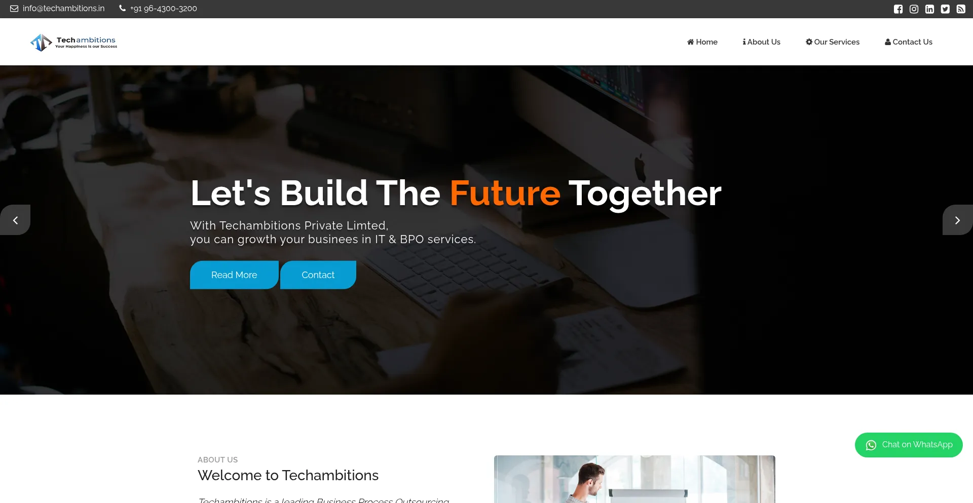 techambitions.in uses Bootstrap, a widely-adopted open-source framework for responsive web development. Bootstrap enables efficient creation of mobile-friendly interfaces through standardized components and styling.