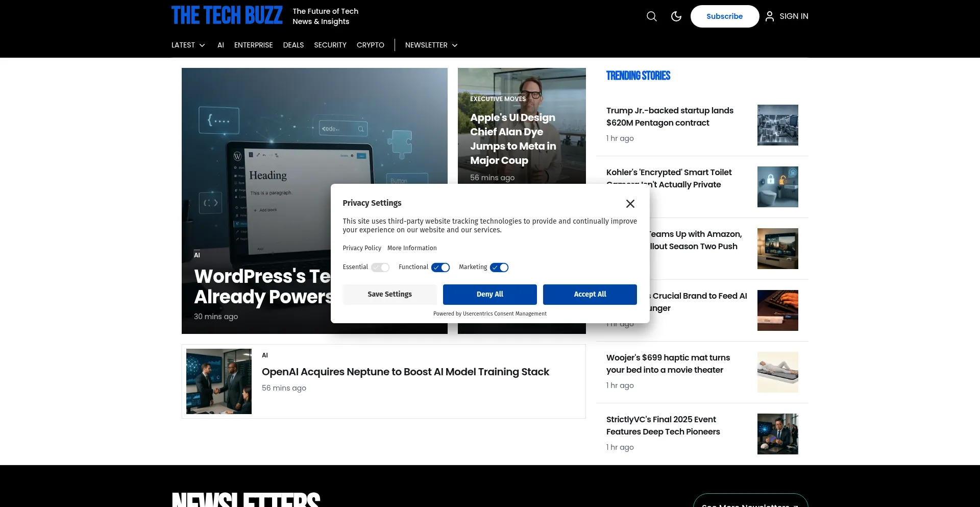 The website implements cookie consent mechanisms in compliance with privacy regulations such as GDPR or CCPA. This demonstrates that techbuzz.ai adheres to data protection standards and provides users with control over personal data collection practices.