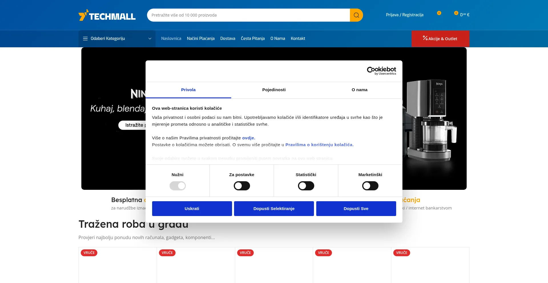The website implements cookie consent mechanisms in compliance with privacy regulations such as GDPR or CCPA. This demonstrates that techmall.hr adheres to data protection standards and provides users with control over personal data collection practices.