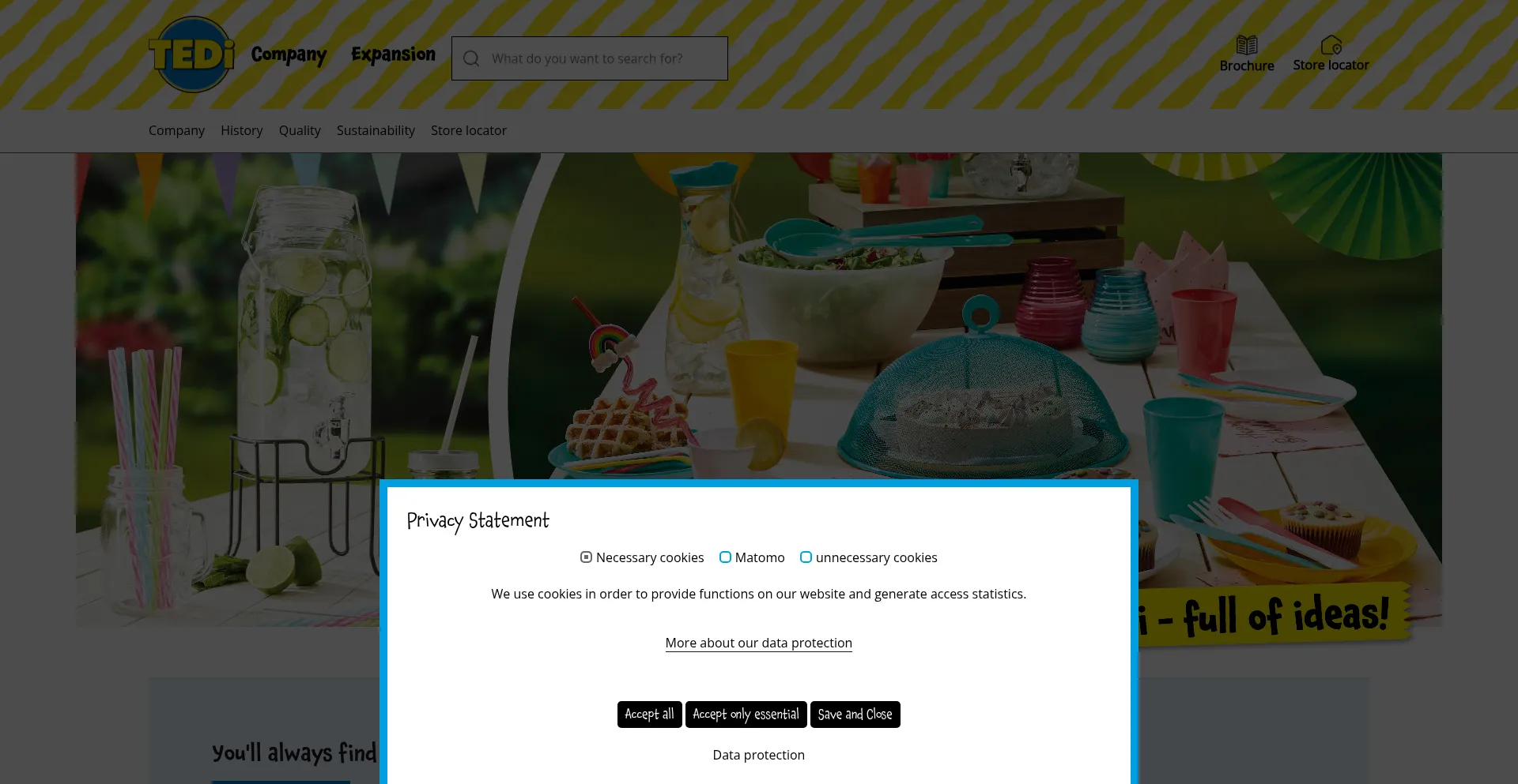 The website implements cookie consent mechanisms in compliance with privacy regulations such as GDPR or CCPA. This demonstrates that tedi.de adheres to data protection standards and provides users with control over personal data collection practices.