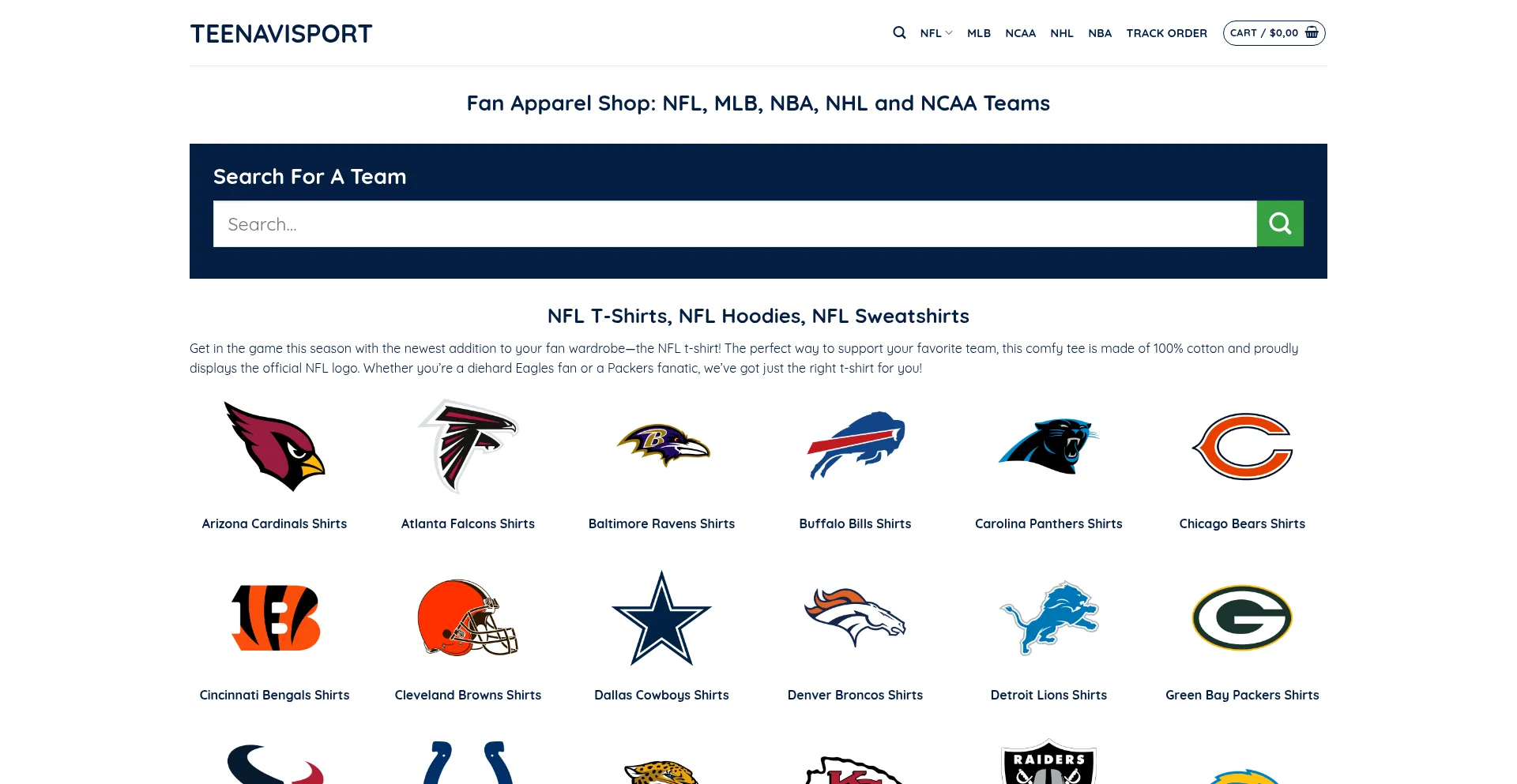 Fan Apparel Shop: NFL, MLB, NBA, NHL and NCAA Teams | TeeNaviSport
