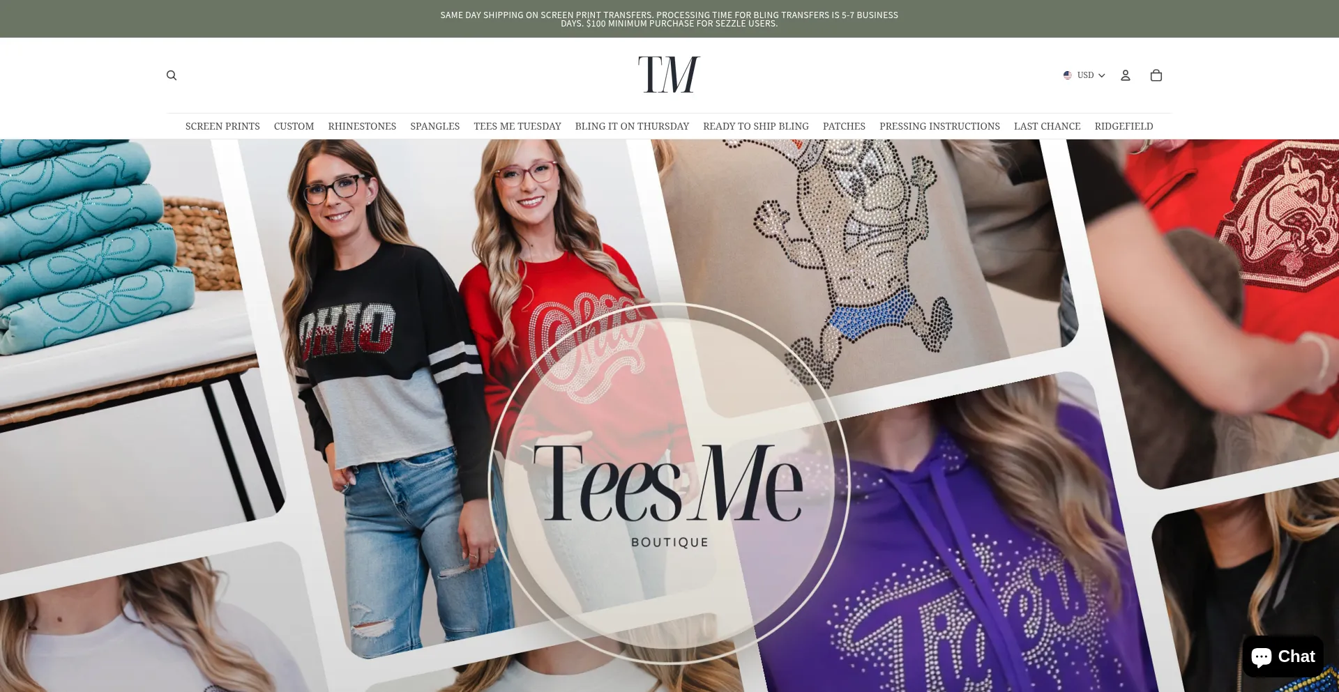 Tees Me Boutique offers high-quality screen print, rhinestone, and spangle transfers for boutique owners and makers. Ready-to-ship designs, custom options, and fast turnaround.